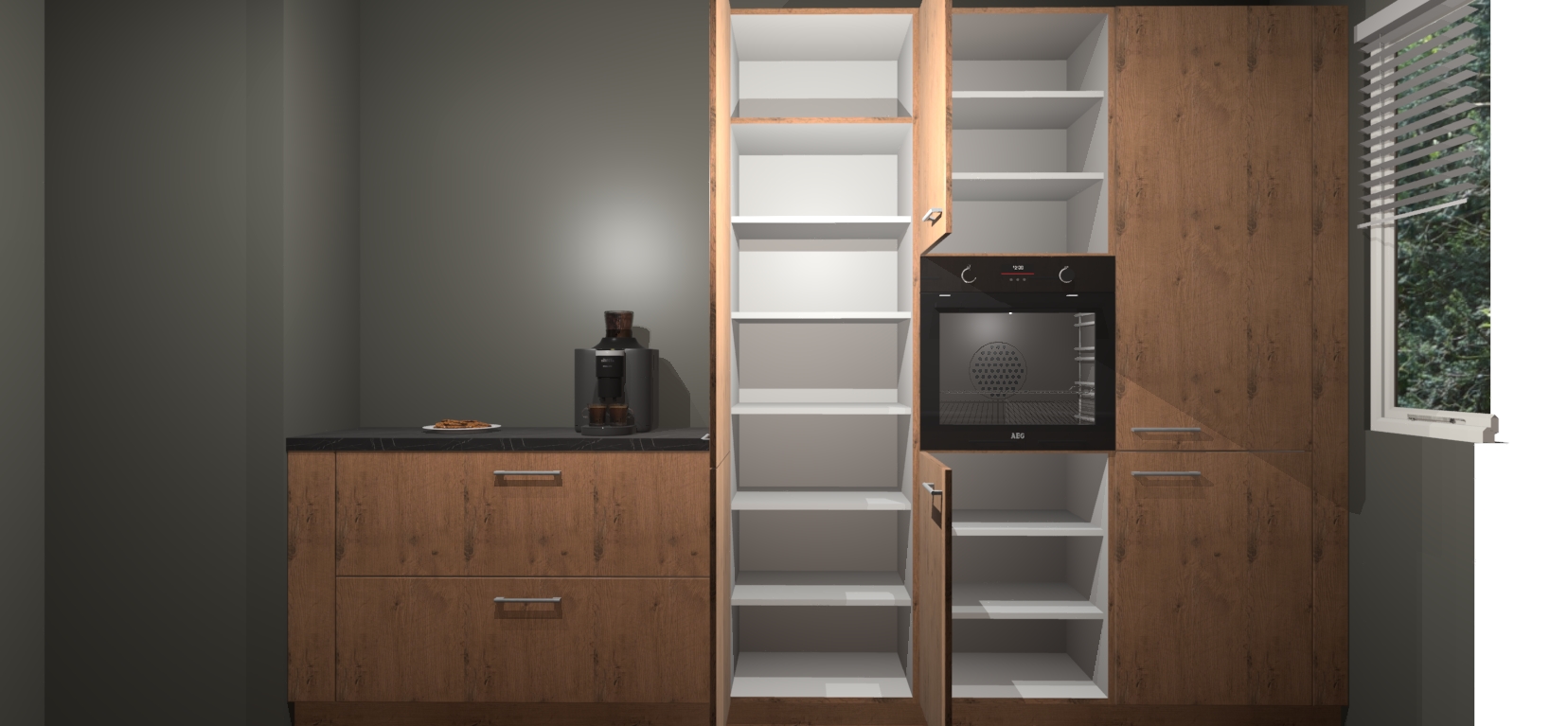 Een stijlvolle en praktische keuken als deze mag gezien worden. Dankzij de prachtige Astoria Eiken matte afwerking wordt de keuken gemakkelijk het middelpunt van uw huis - hij ziet er geweldig uit onder allerlei lichtomstandigheden, van dag tot nacht!