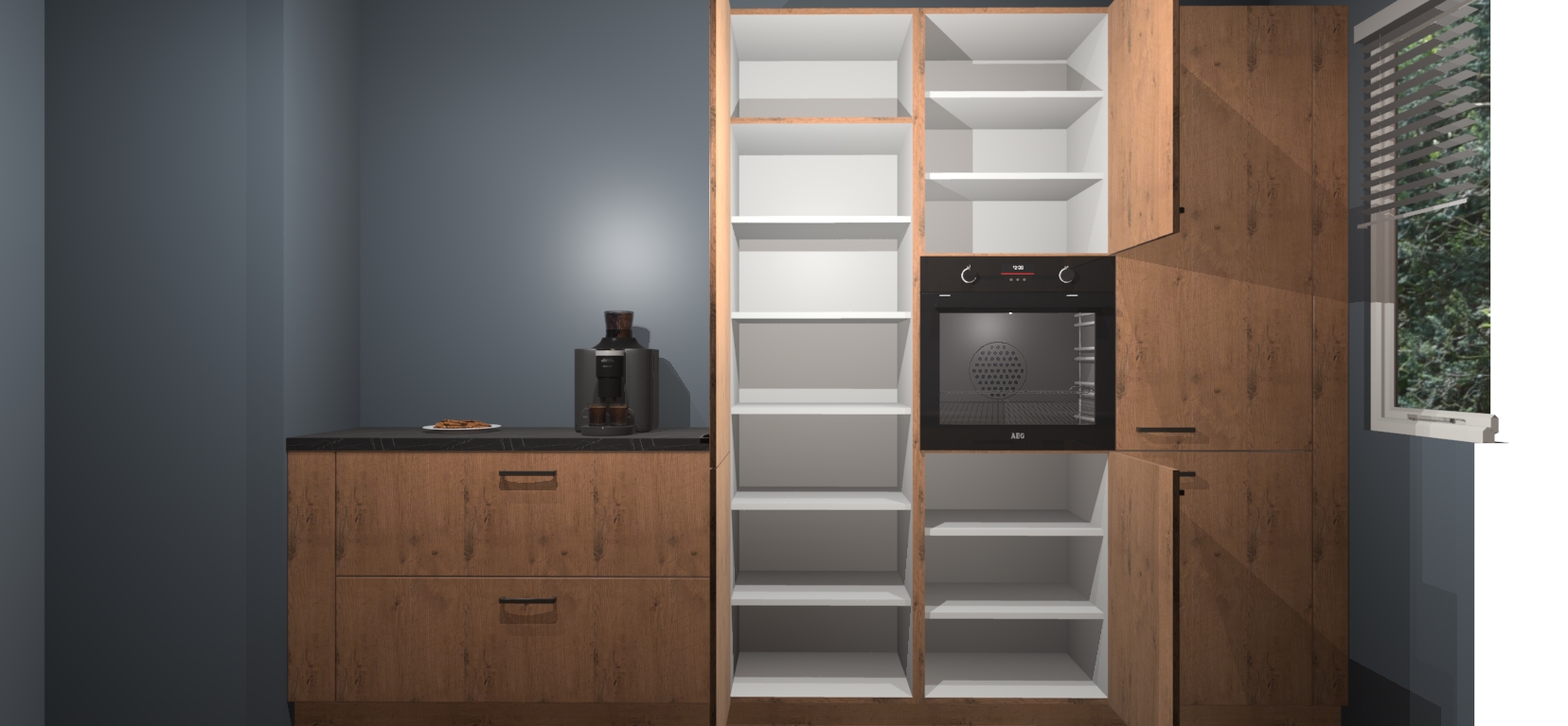 Een stijlvolle en praktische keuken als deze mag gezien worden. Dankzij de prachtige Astoria Eiken matte afwerking wordt de keuken gemakkelijk het middelpunt van uw huis - hij ziet er geweldig uit onder allerlei lichtomstandigheden, van dag tot nacht!