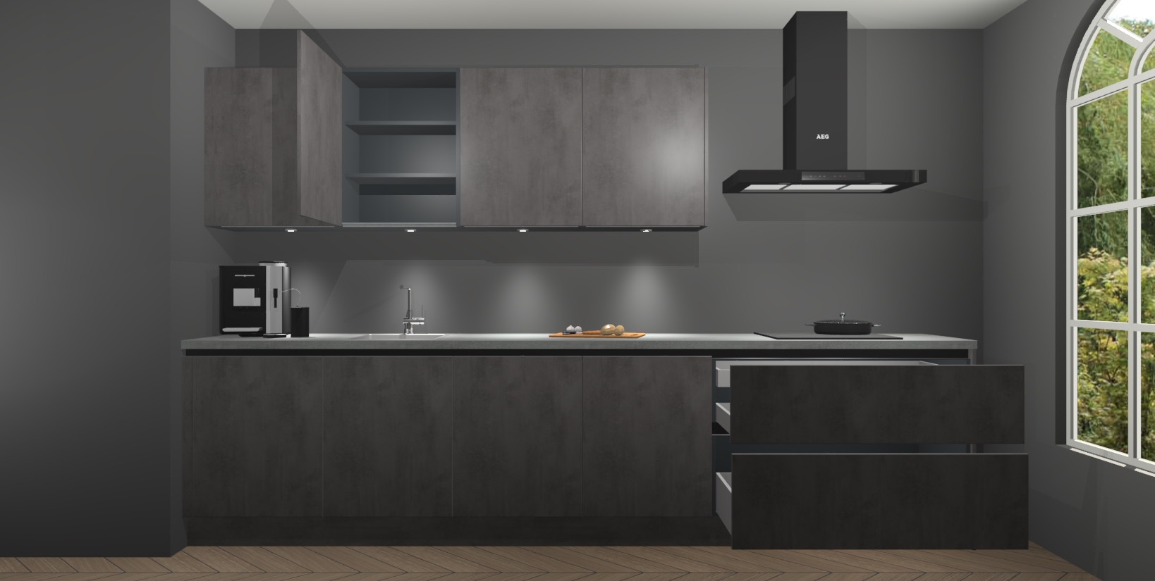 Maak van uw keuken een plek waar u trots op bent - trakteer uzelf vandaag nog op de kwaliteit en elegantie van de Beton Antraciet greeploze keuken Dawei!
