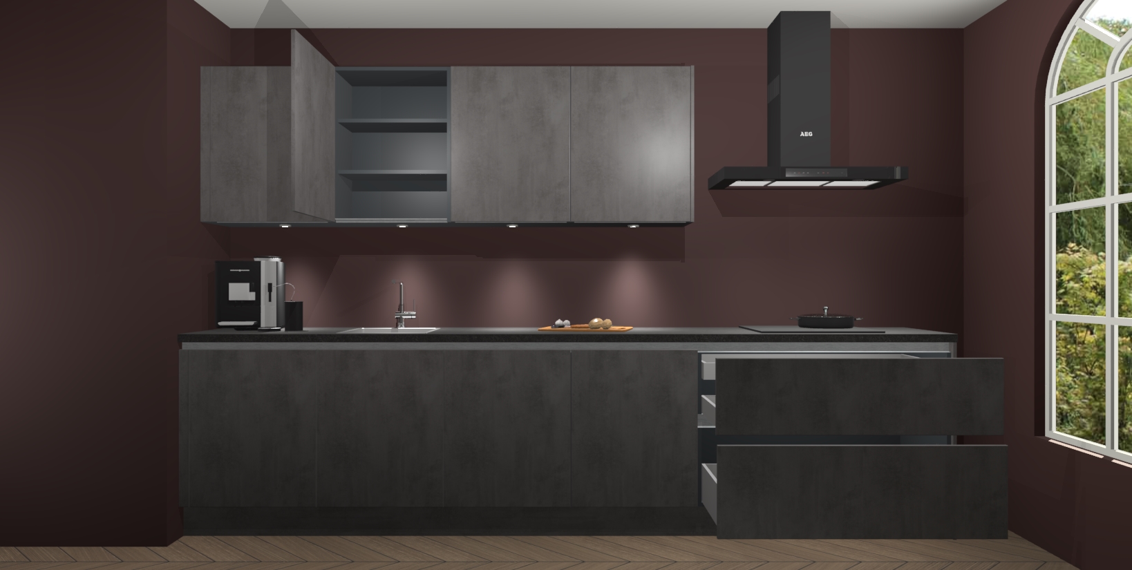 Maak van uw keuken een plek waar u trots op bent - trakteer uzelf vandaag nog op de kwaliteit en elegantie van de Beton Antraciet greeploze keuken Dawei!