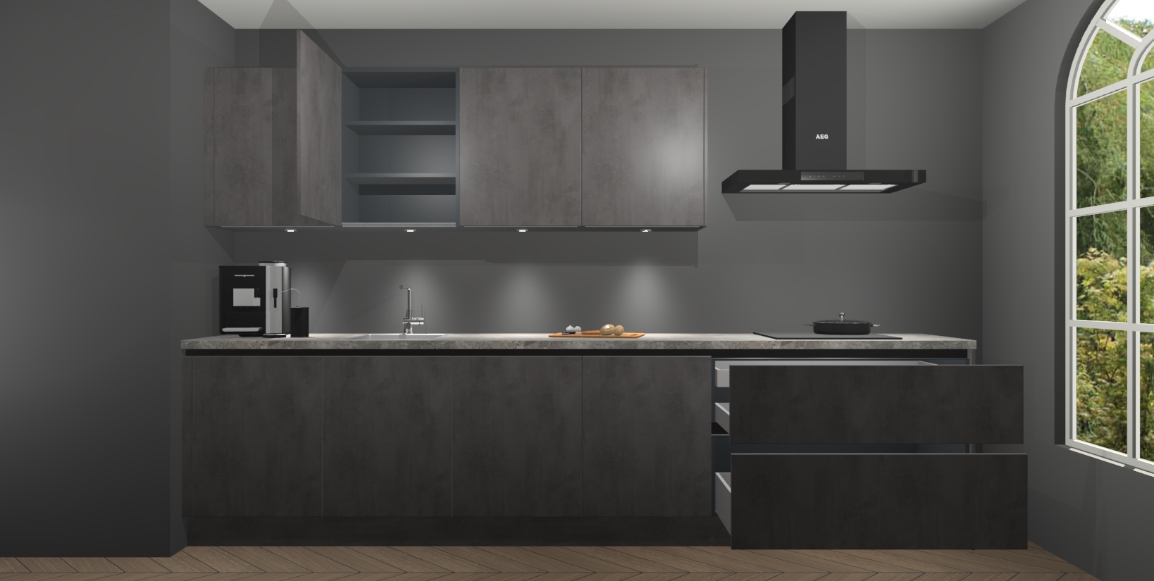 Maak van uw keuken een plek waar u trots op bent - trakteer uzelf vandaag nog op de kwaliteit en elegantie van de Beton Antraciet greeploze keuken Dawei!