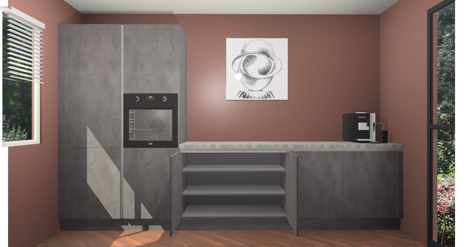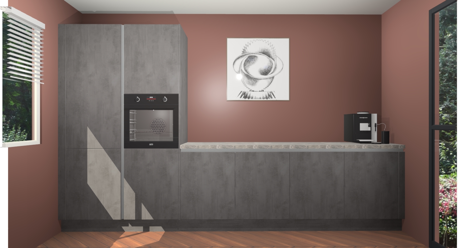 Welkom bij de Beton Antraciet greeploze keuken Lusaka. Deze prachtige keuken zal de komende jaren het middelpunt van de belangstelling in uw huis zijn. Uitgerust met vijf inbouwapparaten komt u nooit kookgereedschap tekort. Bovendien geeft de warme houtlook elke ruimte een uitnodigende en tijdloze uitstraling.