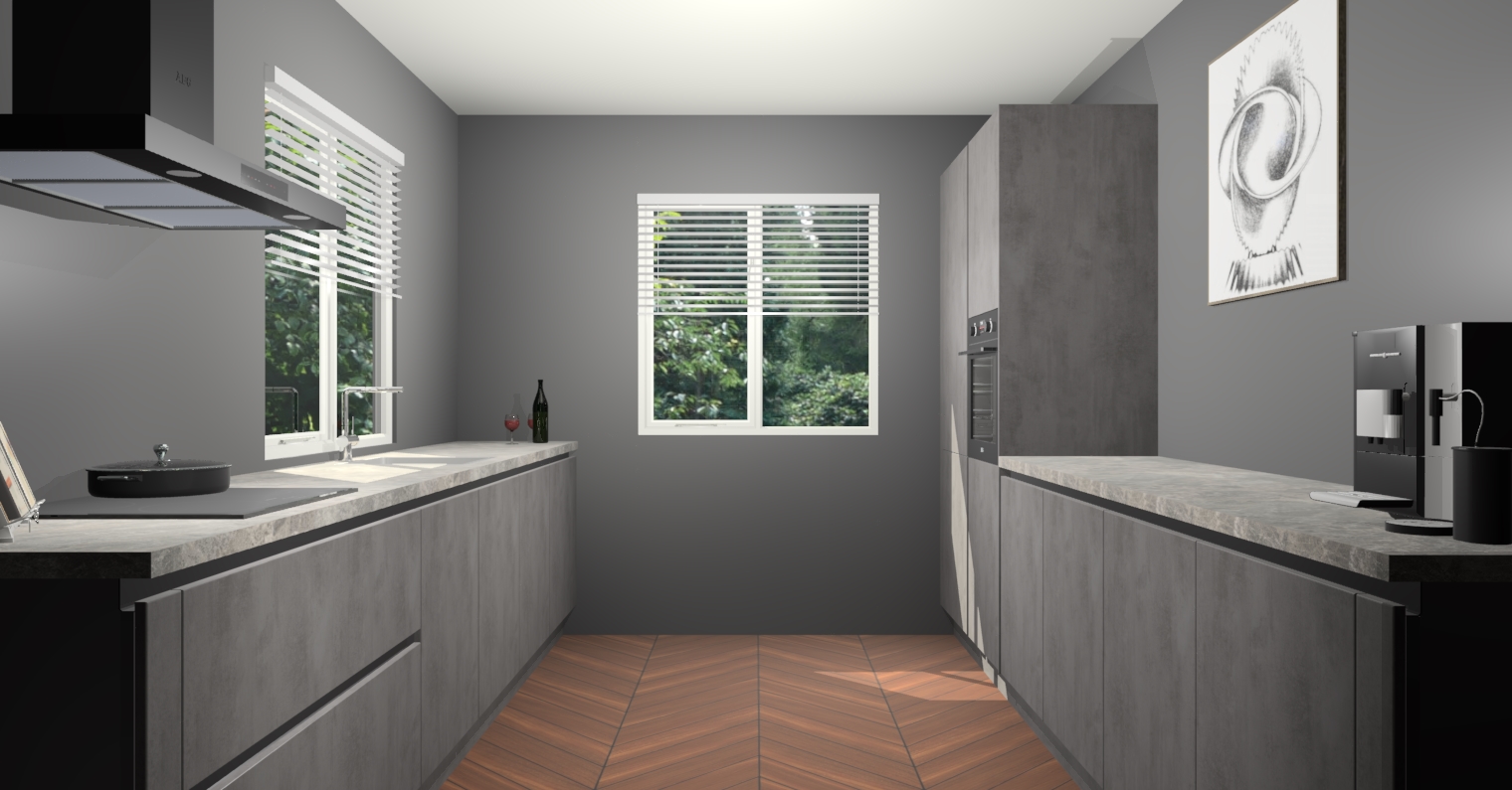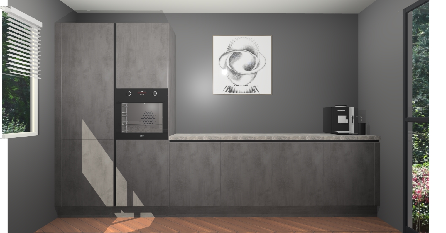 Welkom bij de Beton Antraciet greeploze keuken Lusaka. Deze prachtige keuken zal de komende jaren het middelpunt van de belangstelling in uw huis zijn. Uitgerust met vijf inbouwapparaten komt u nooit kookgereedschap tekort. Bovendien geeft de warme houtlook elke ruimte een uitnodigende en tijdloze uitstraling.