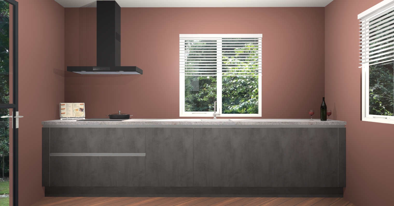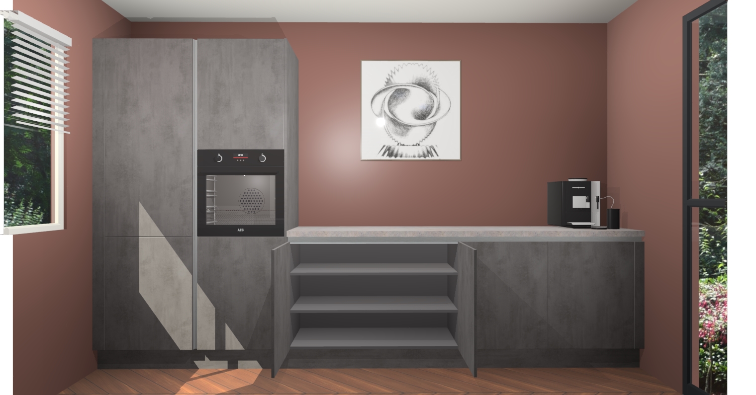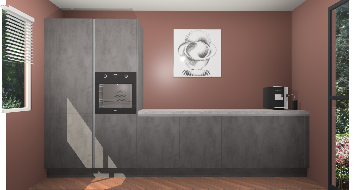 Welkom bij de Beton Antraciet greeploze keuken Lusaka. Deze prachtige keuken zal de komende jaren het middelpunt van de belangstelling in uw huis zijn. Uitgerust met vijf inbouwapparaten komt u nooit kookgereedschap tekort. Bovendien geeft de warme houtlook elke ruimte een uitnodigende en tijdloze uitstraling.