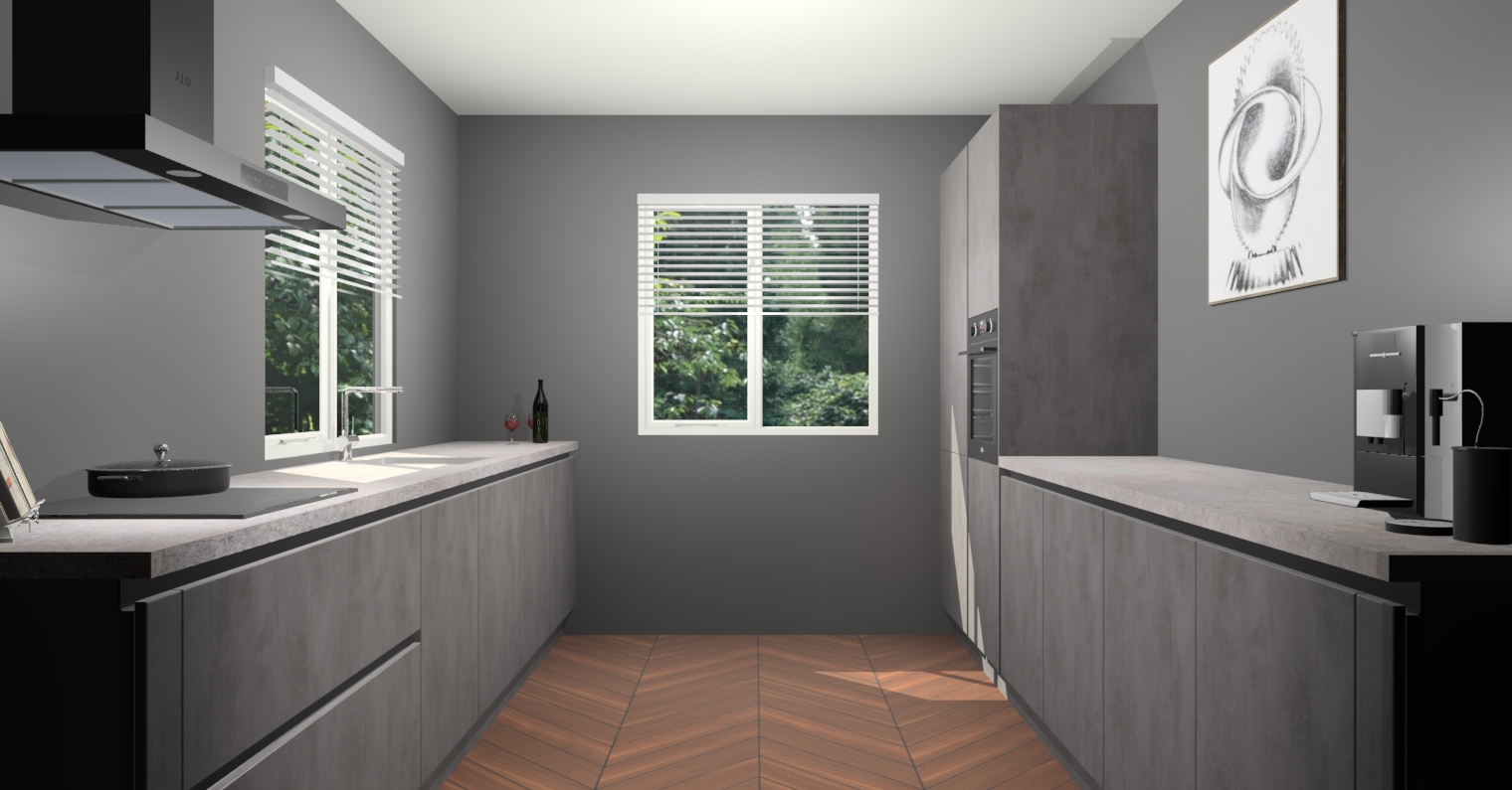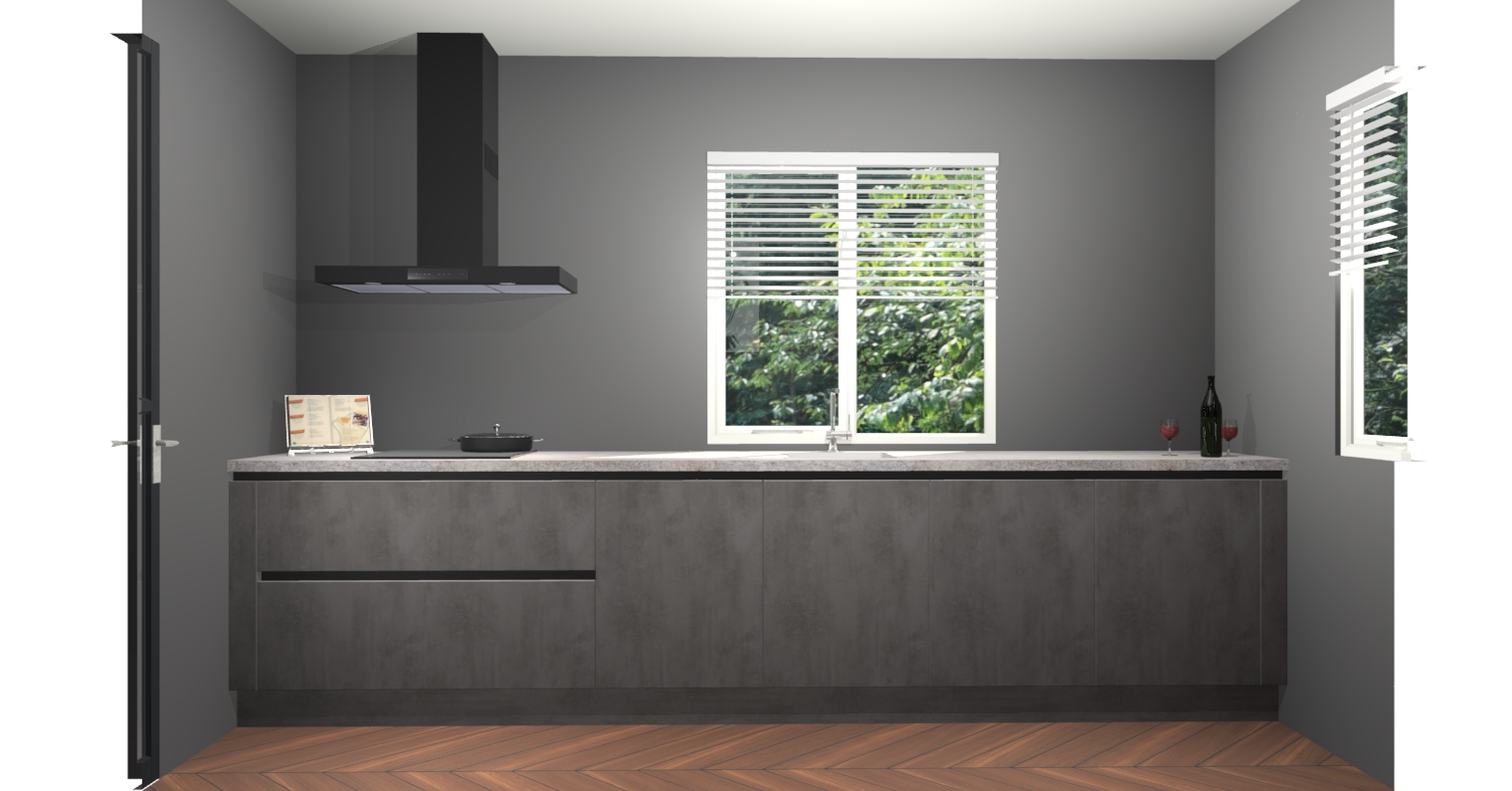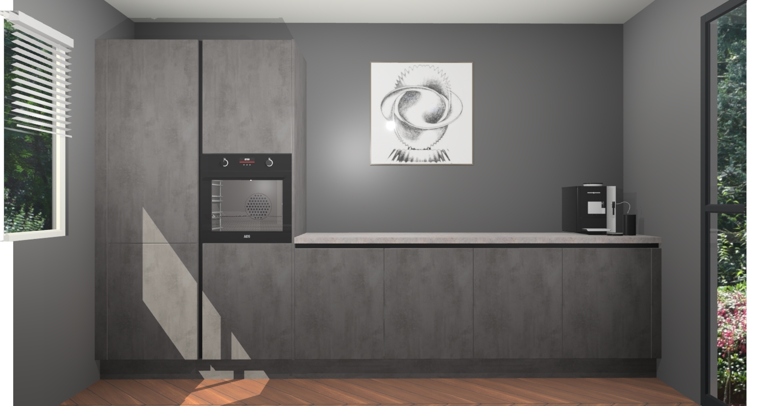 Welkom bij de Beton Antraciet greeploze keuken Lusaka. Deze prachtige keuken zal de komende jaren het middelpunt van de belangstelling in uw huis zijn. Uitgerust met vijf inbouwapparaten komt u nooit kookgereedschap tekort. Bovendien geeft de warme houtlook elke ruimte een uitnodigende en tijdloze uitstraling.