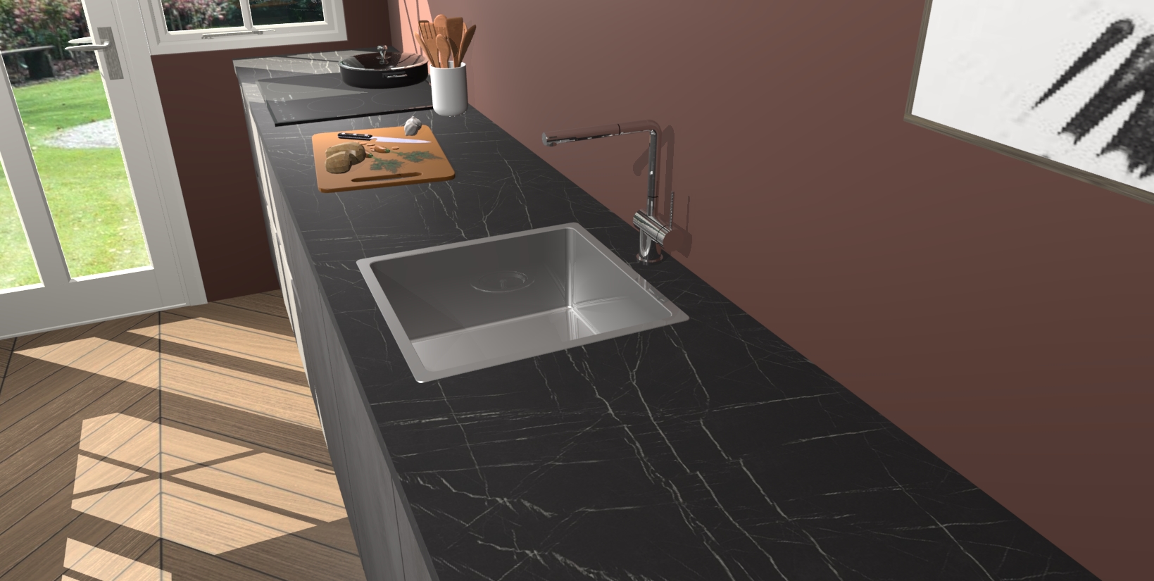 - Bij een hoekwerkblad zijn de hoeken in gevreesd en op maat gemaakt