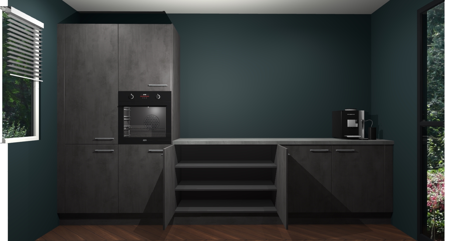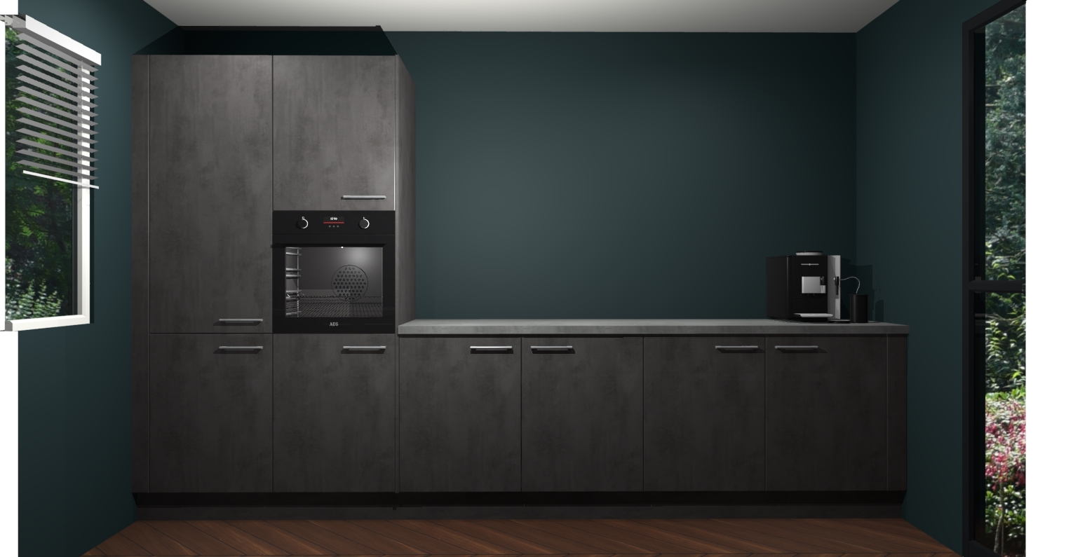 Welkom bij de Beton Antraciet keuken Lusaka. Deze prachtige keuken zal de komende jaren het middelpunt van de belangstelling in uw huis zijn. Uitgerust met vijf inbouwapparaten komt u nooit kookgereedschap tekort. Bovendien geeft de warme houtlook elke ruimte een uitnodigende en tijdloze uitstraling.