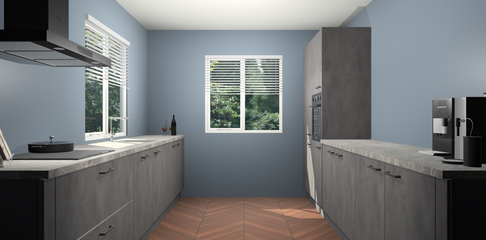 Welkom bij de Beton Antraciet keuken Lusaka. Deze prachtige keuken zal de komende jaren het middelpunt van de belangstelling in uw huis zijn. Uitgerust met vijf inbouwapparaten komt u nooit kookgereedschap tekort. Bovendien geeft de warme houtlook elke ruimte een uitnodigende en tijdloze uitstraling.