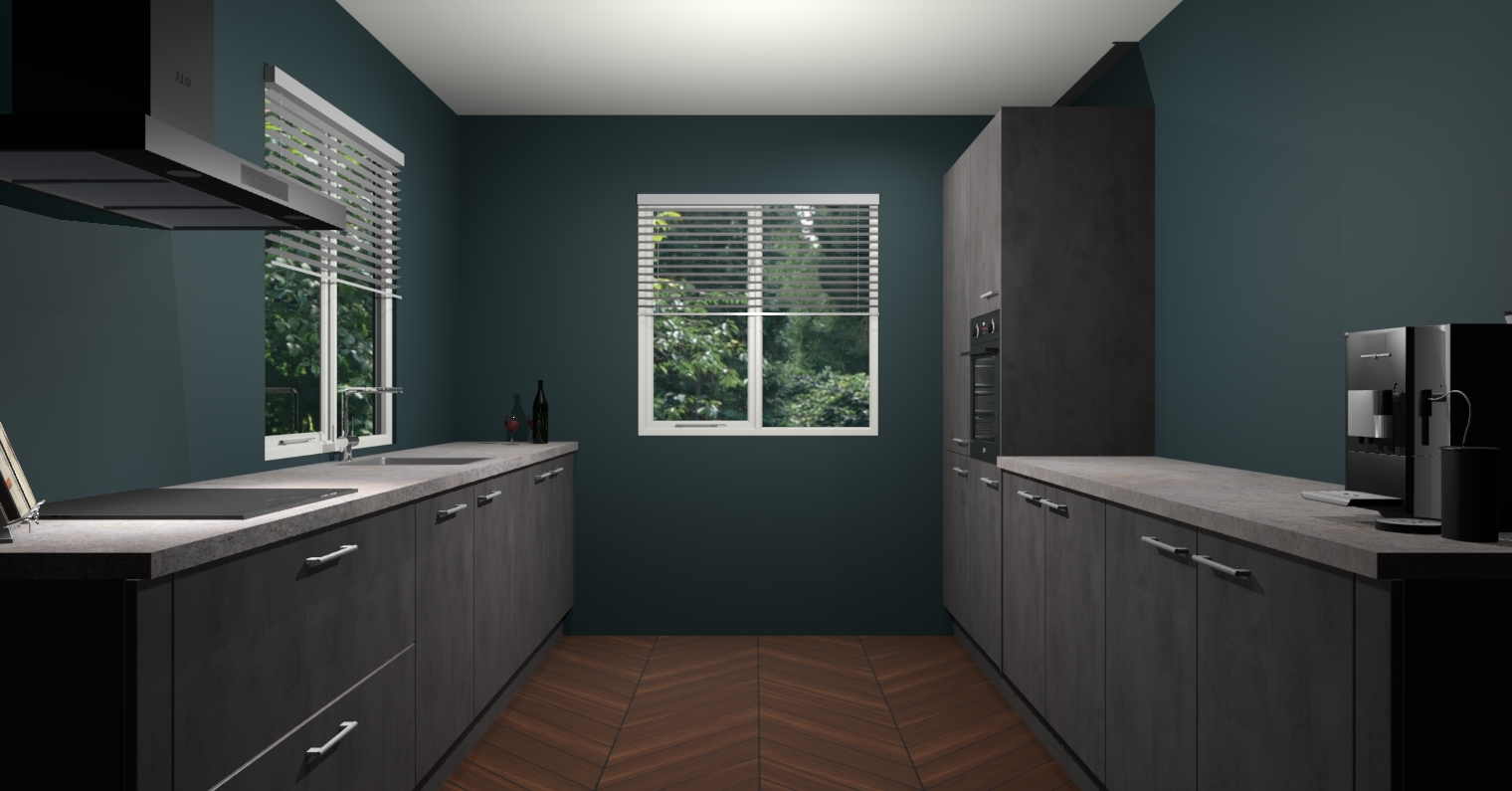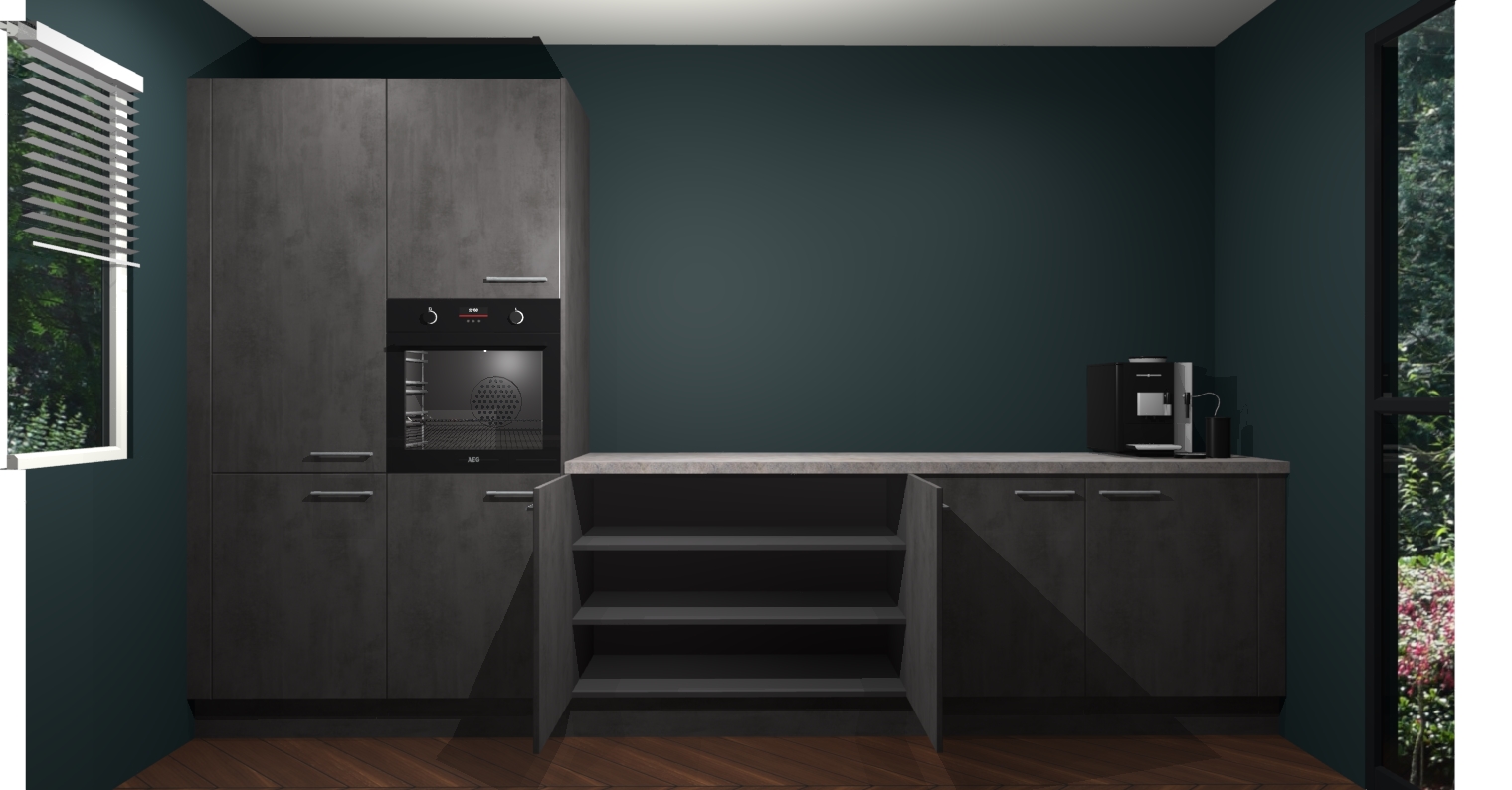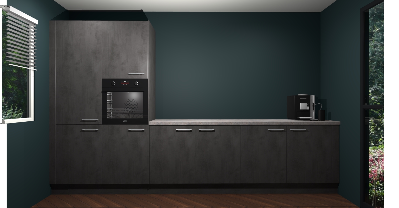 Welkom bij de Beton Antraciet keuken Lusaka. Deze prachtige keuken zal de komende jaren het middelpunt van de belangstelling in uw huis zijn. Uitgerust met vijf inbouwapparaten komt u nooit kookgereedschap tekort. Bovendien geeft de warme houtlook elke ruimte een uitnodigende en tijdloze uitstraling.
