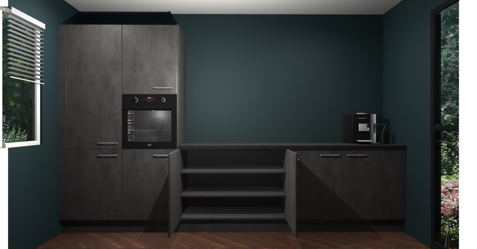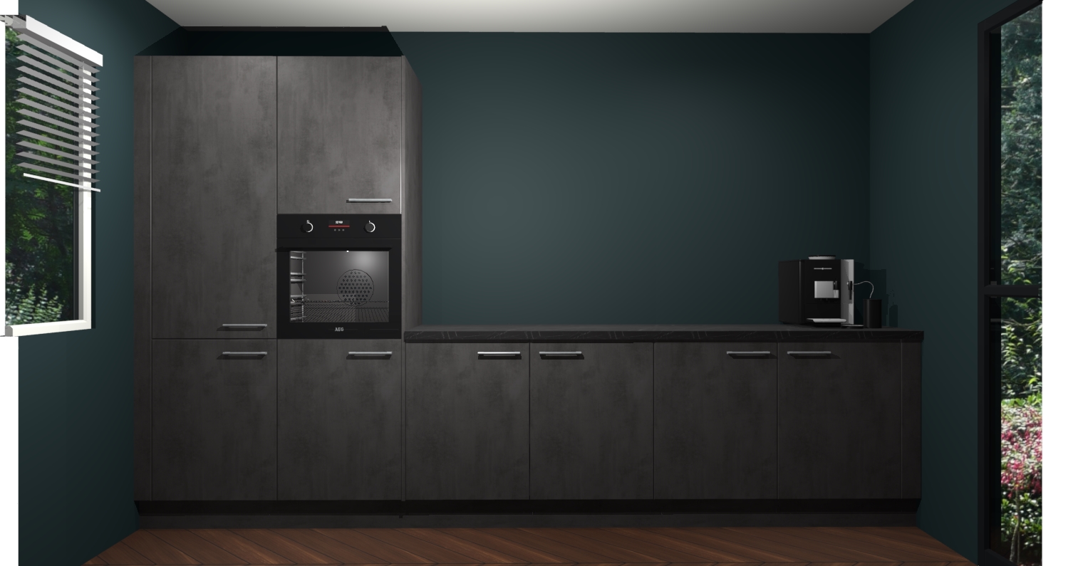 Welkom bij de Beton Antraciet keuken Lusaka. Deze prachtige keuken zal de komende jaren het middelpunt van de belangstelling in uw huis zijn. Uitgerust met vijf inbouwapparaten komt u nooit kookgereedschap tekort. Bovendien geeft de warme houtlook elke ruimte een uitnodigende en tijdloze uitstraling.