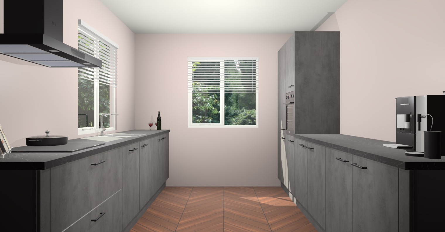 Welkom bij de Beton Antraciet keuken Lusaka. Deze prachtige keuken zal de komende jaren het middelpunt van de belangstelling in uw huis zijn. Uitgerust met vijf inbouwapparaten komt u nooit kookgereedschap tekort. Bovendien geeft de warme houtlook elke ruimte een uitnodigende en tijdloze uitstraling.