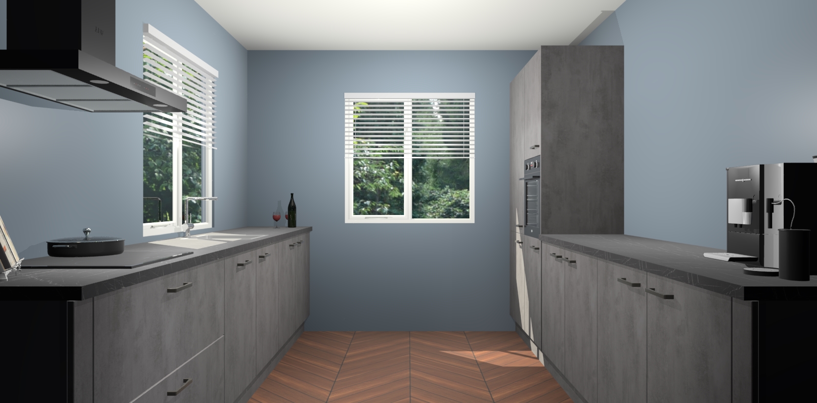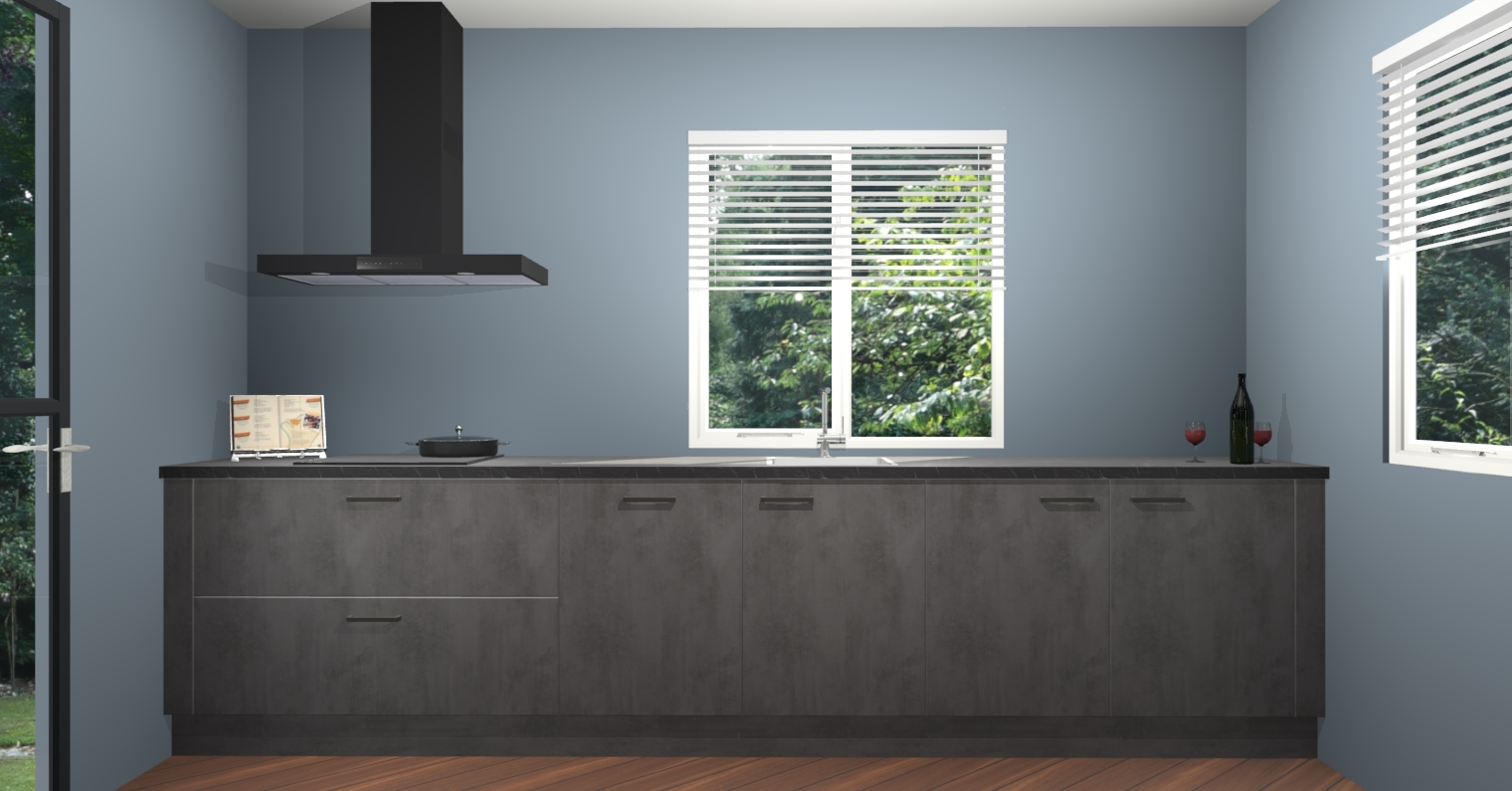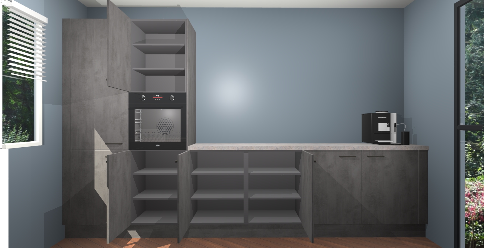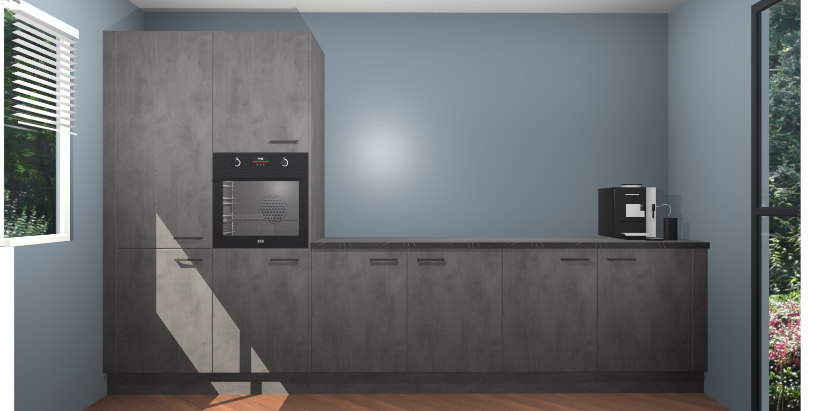 Welkom bij de Beton Antraciet keuken Lusaka. Deze prachtige keuken zal de komende jaren het middelpunt van de belangstelling in uw huis zijn. Uitgerust met vijf inbouwapparaten komt u nooit kookgereedschap tekort. Bovendien geeft de warme houtlook elke ruimte een uitnodigende en tijdloze uitstraling.