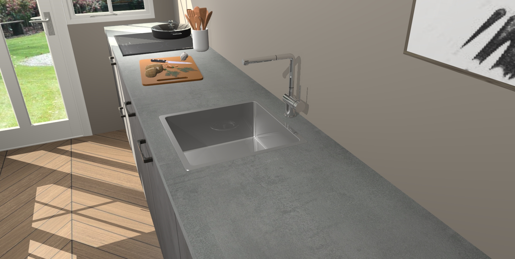 • Bij een hoekwerkblad zijn de hoeken in gevreesd en op maat gemaakt