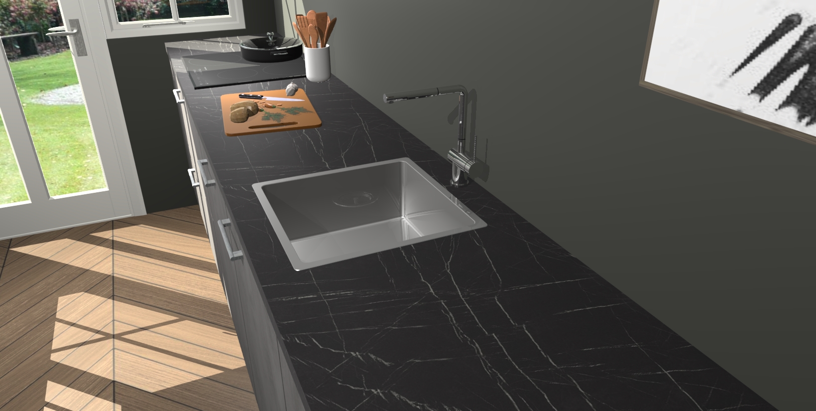 • Bij een hoekwerkblad zijn de hoeken in gevreesd en op maat gemaakt