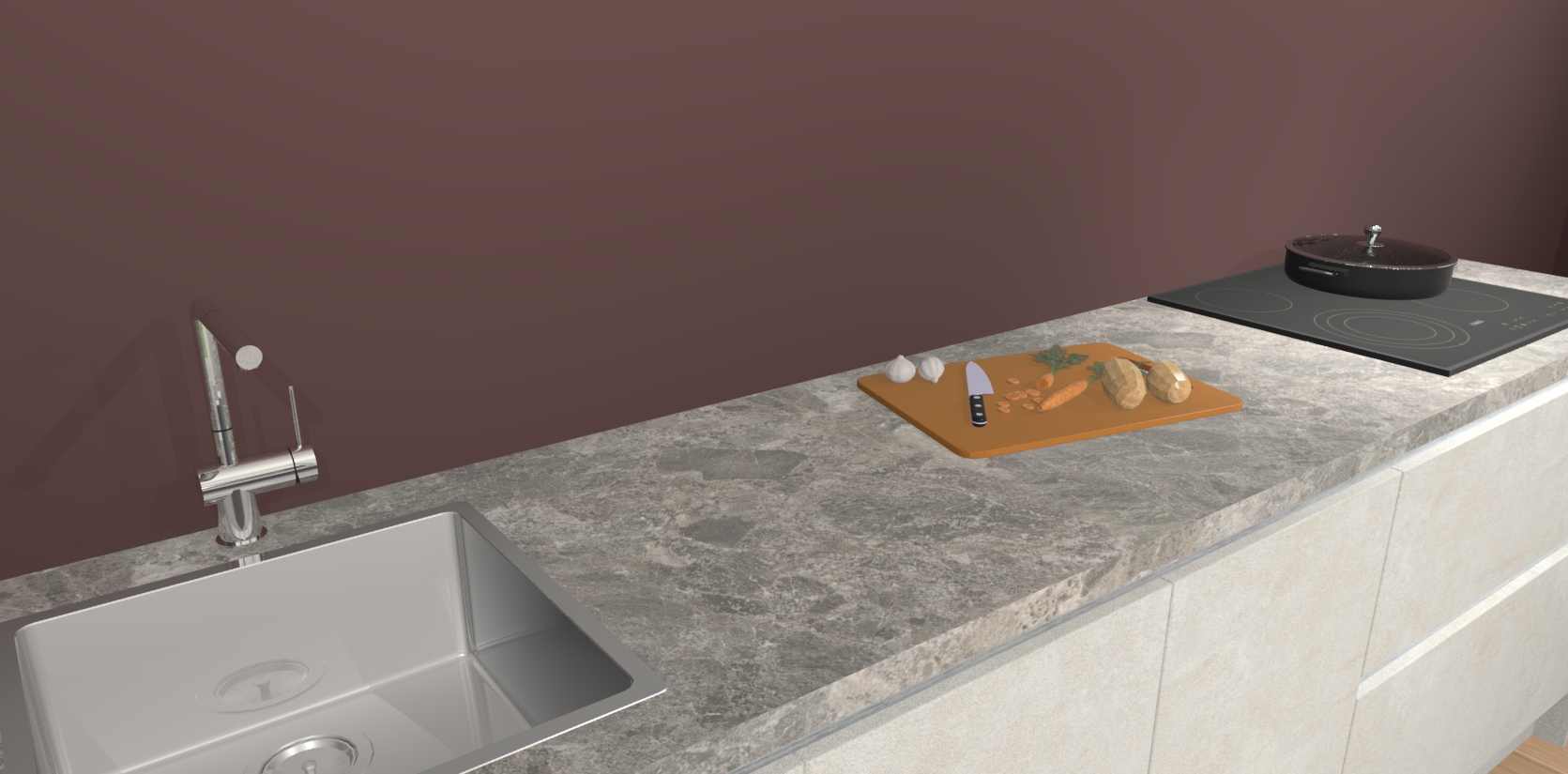 - Uitsparing van kookplaat, spoelbak en kraan dient u zelf te verzorgen.