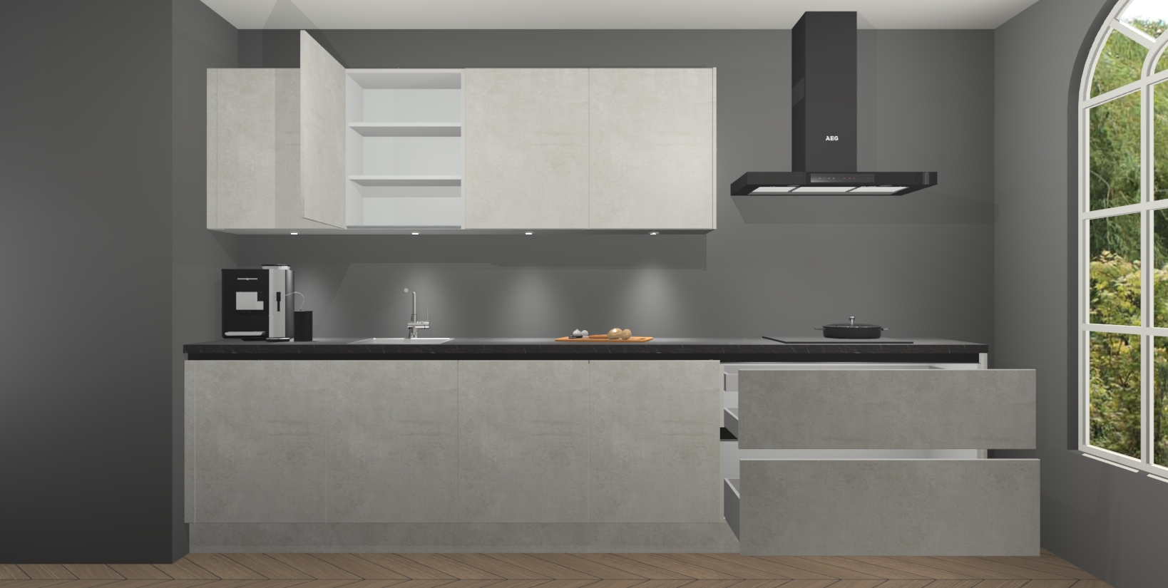 Maak van uw keuken een plek waar u trots op bent - trakteer uzelf vandaag nog op de kwaliteit en elegantie van de Beton Opaal greeploze keuken Dawei!