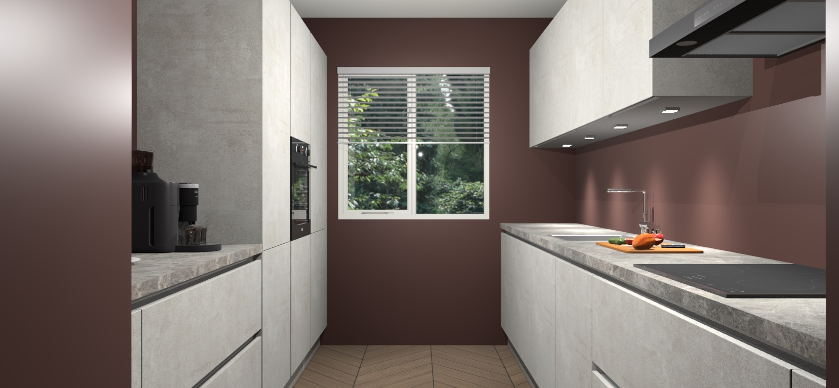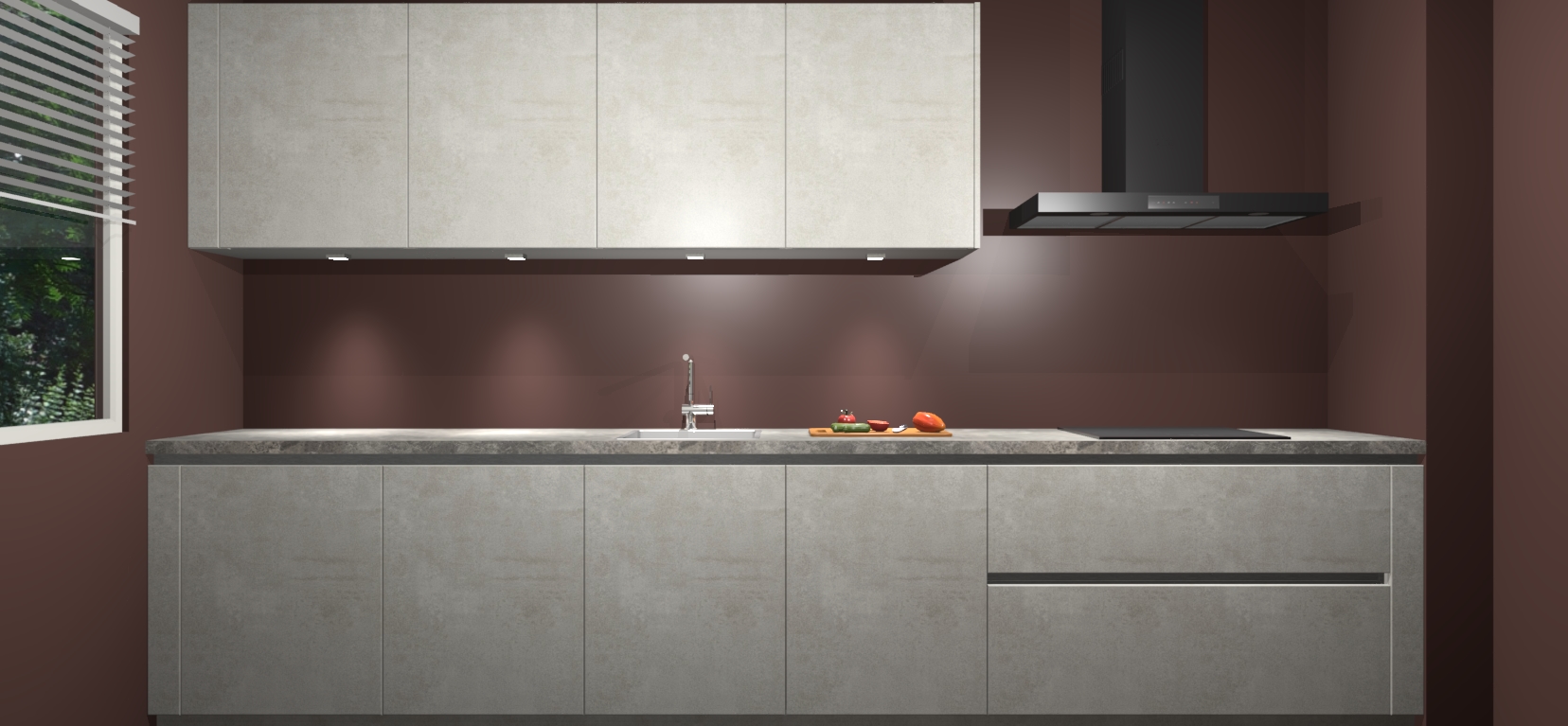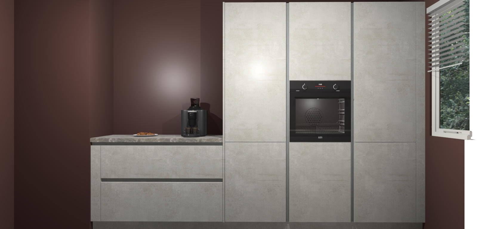 Een stijlvolle en praktische keuken als deze mag gezien worden. Dankzij de prachtige Beton Opaal matte afwerking wordt de keuken gemakkelijk het middelpunt van uw huis - hij ziet er geweldig uit onder allerlei lichtomstandigheden, van dag tot nacht!