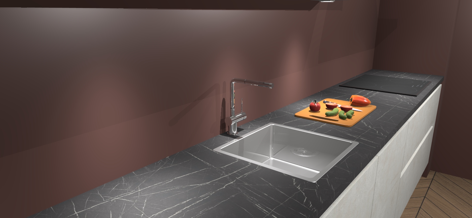 - Uitsparing van kookplaat, spoelbak en kraan dient u zelf te verzorgen.