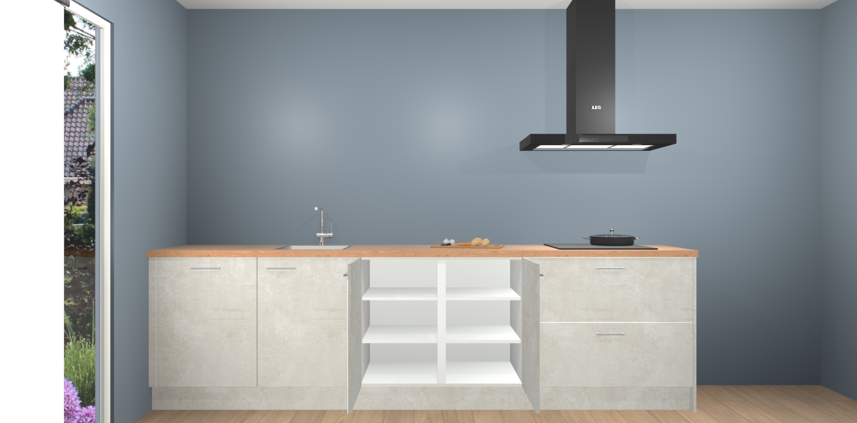 De softclose deuren openen en sluiten is ook heel eenvoudig - geniet van een moeiteloze keukenervaring, zelfs als er kinderen rondlopen. Voor extra gemak bij het plaatsen van uw bestelling bieden we ook een upgrade naar een kookplaat met geïntegreerde afzuiging.