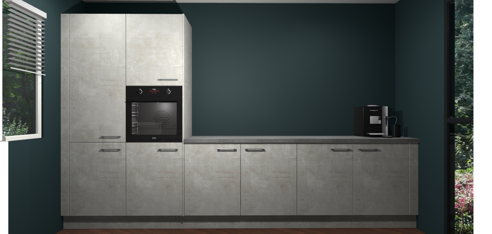 Welkom bij de Beton Opaal keuken Lusaka. Deze prachtige keuken zal de komende jaren het middelpunt van de belangstelling in uw huis zijn. Uitgerust met vijf inbouwapparaten komt u nooit kookgereedschap tekort. Bovendien geeft de warme houtlook elke ruimte een uitnodigende en tijdloze uitstraling.