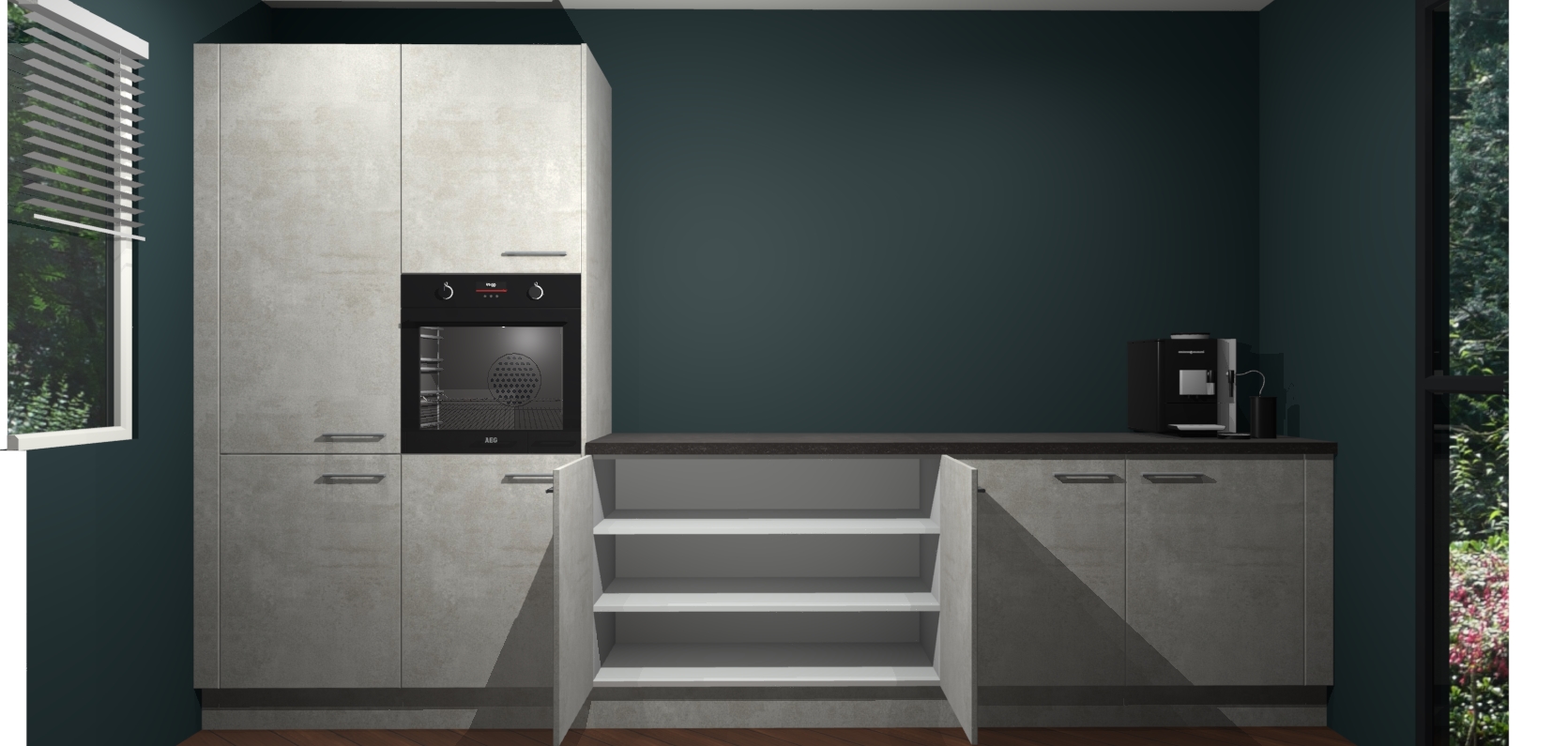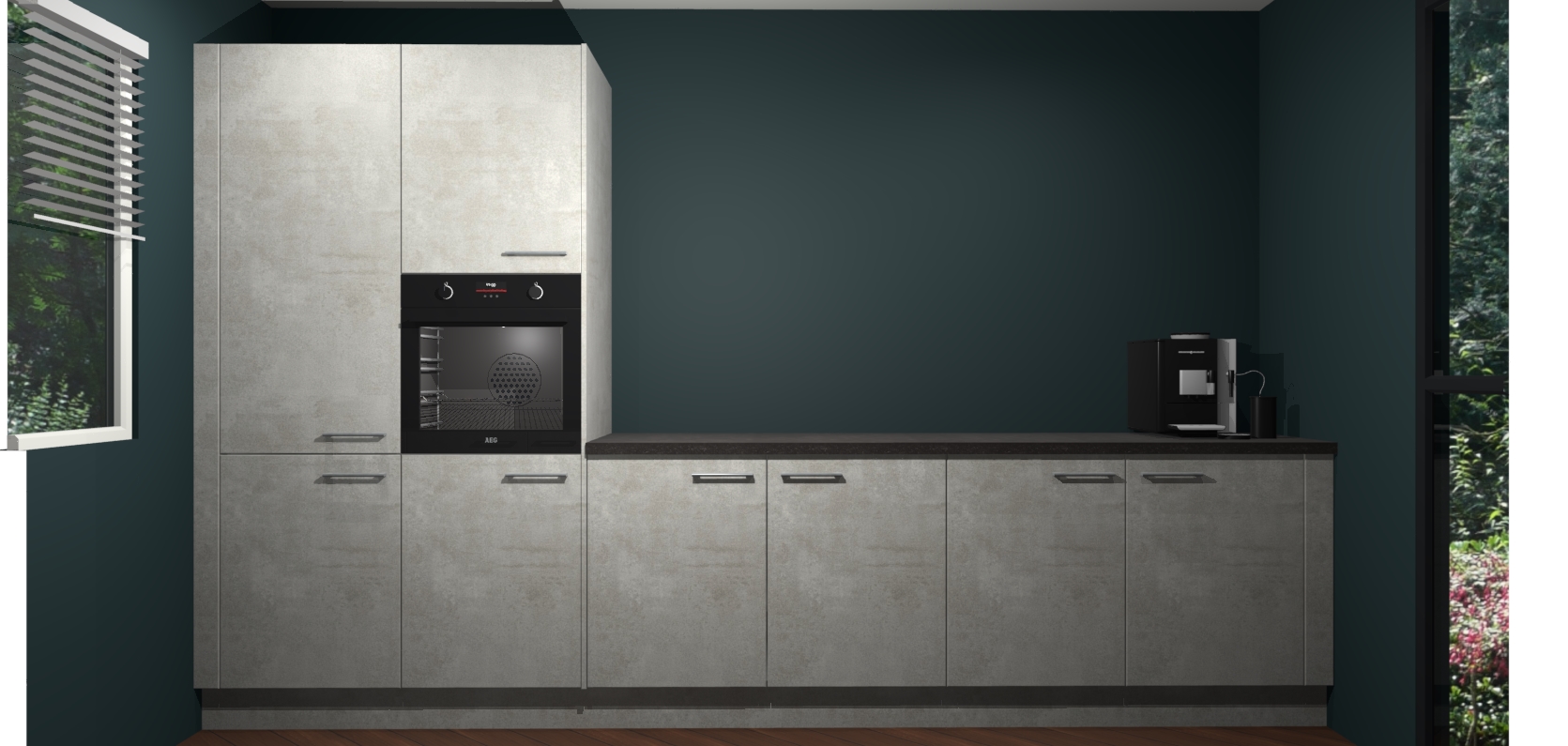 Welkom bij de Beton Opaal keuken Lusaka. Deze prachtige keuken zal de komende jaren het middelpunt van de belangstelling in uw huis zijn. Uitgerust met vijf inbouwapparaten komt u nooit kookgereedschap tekort. Bovendien geeft de warme houtlook elke ruimte een uitnodigende en tijdloze uitstraling.