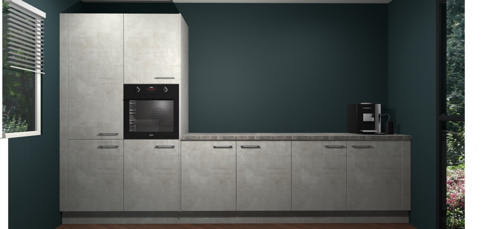 Welkom bij de Beton Opaal keuken Lusaka. Deze prachtige keuken zal de komende jaren het middelpunt van de belangstelling in uw huis zijn. Uitgerust met vijf inbouwapparaten komt u nooit kookgereedschap tekort. Bovendien geeft de warme houtlook elke ruimte een uitnodigende en tijdloze uitstraling.