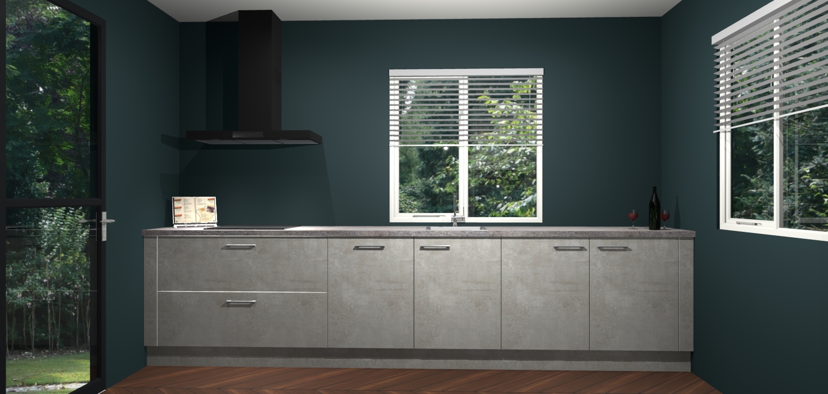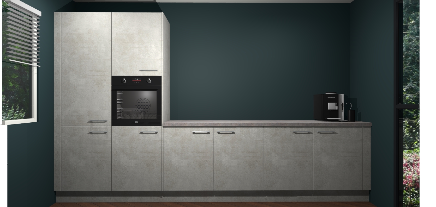 Welkom bij de Beton Opaal keuken Lusaka. Deze prachtige keuken zal de komende jaren het middelpunt van de belangstelling in uw huis zijn. Uitgerust met vijf inbouwapparaten komt u nooit kookgereedschap tekort. Bovendien geeft de warme houtlook elke ruimte een uitnodigende en tijdloze uitstraling.