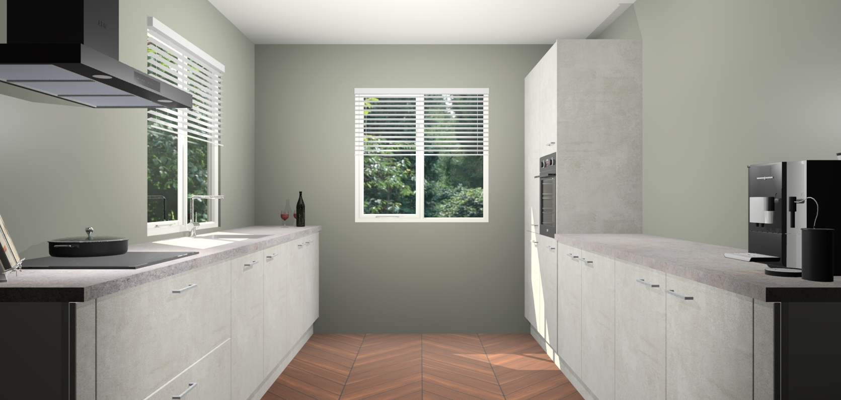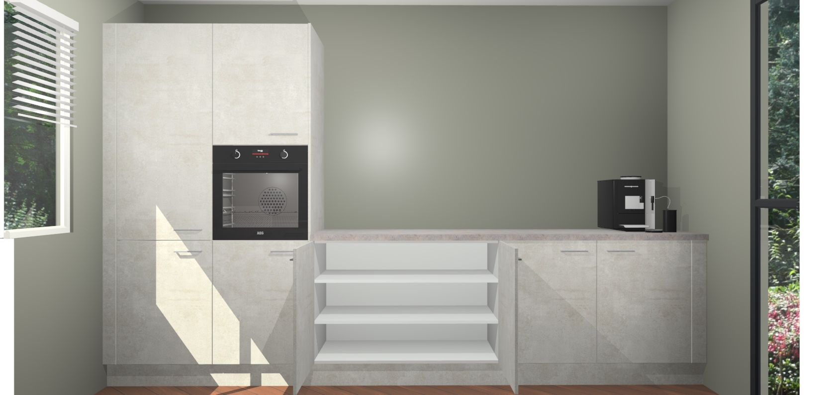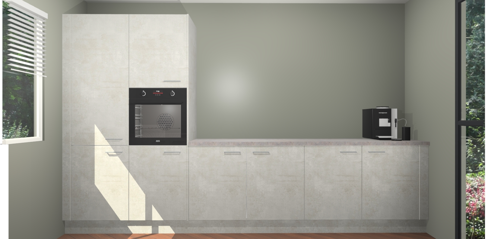 Welkom bij de Beton Opaal keuken Lusaka. Deze prachtige keuken zal de komende jaren het middelpunt van de belangstelling in uw huis zijn. Uitgerust met vijf inbouwapparaten komt u nooit kookgereedschap tekort. Bovendien geeft de warme houtlook elke ruimte een uitnodigende en tijdloze uitstraling.