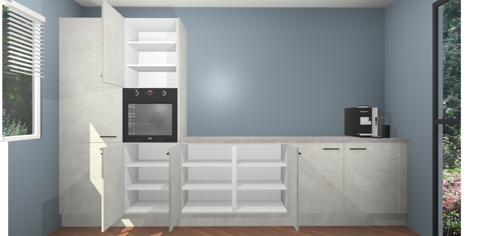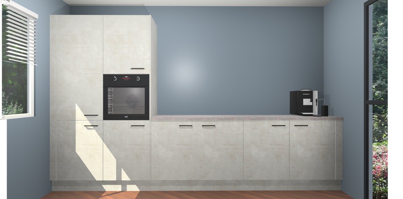 Welkom bij de Beton Opaal keuken Lusaka. Deze prachtige keuken zal de komende jaren het middelpunt van de belangstelling in uw huis zijn. Uitgerust met vijf inbouwapparaten komt u nooit kookgereedschap tekort. Bovendien geeft de warme houtlook elke ruimte een uitnodigende en tijdloze uitstraling.