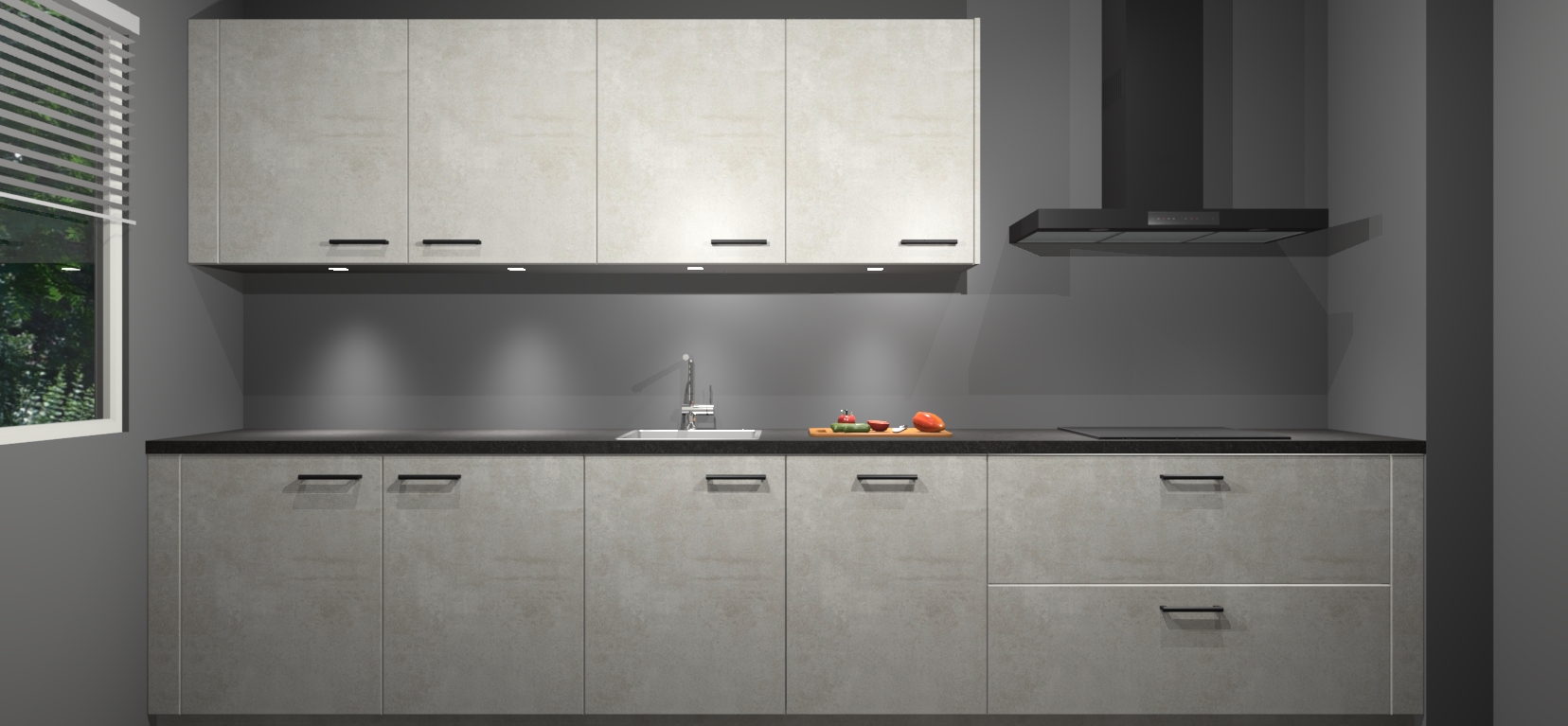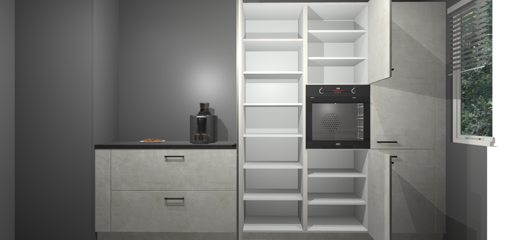 Een stijlvolle en praktische keuken als deze mag gezien worden. Dankzij de prachtige Beton Opaal matte afwerking wordt de keuken gemakkelijk het middelpunt van uw huis - hij ziet er geweldig uit onder allerlei lichtomstandigheden, van dag tot nacht!