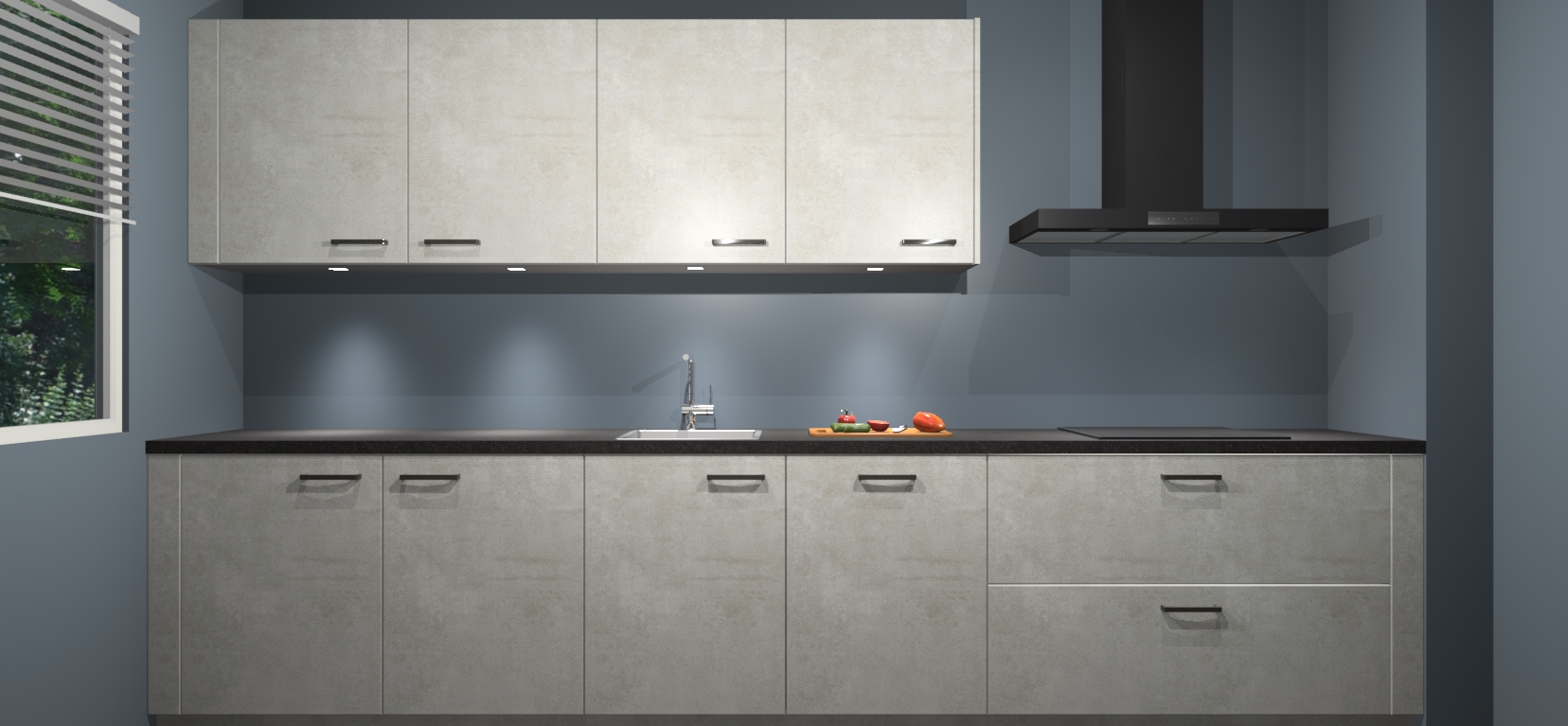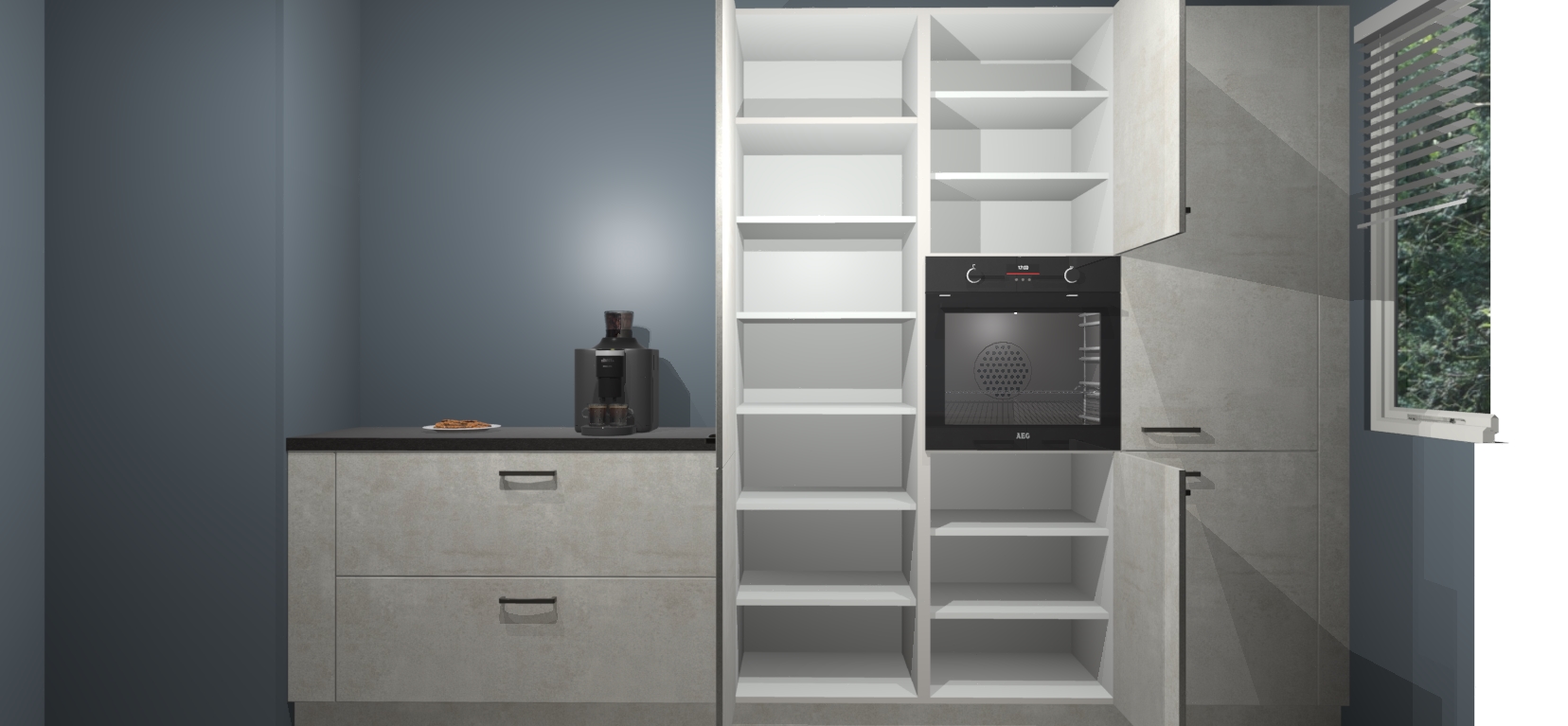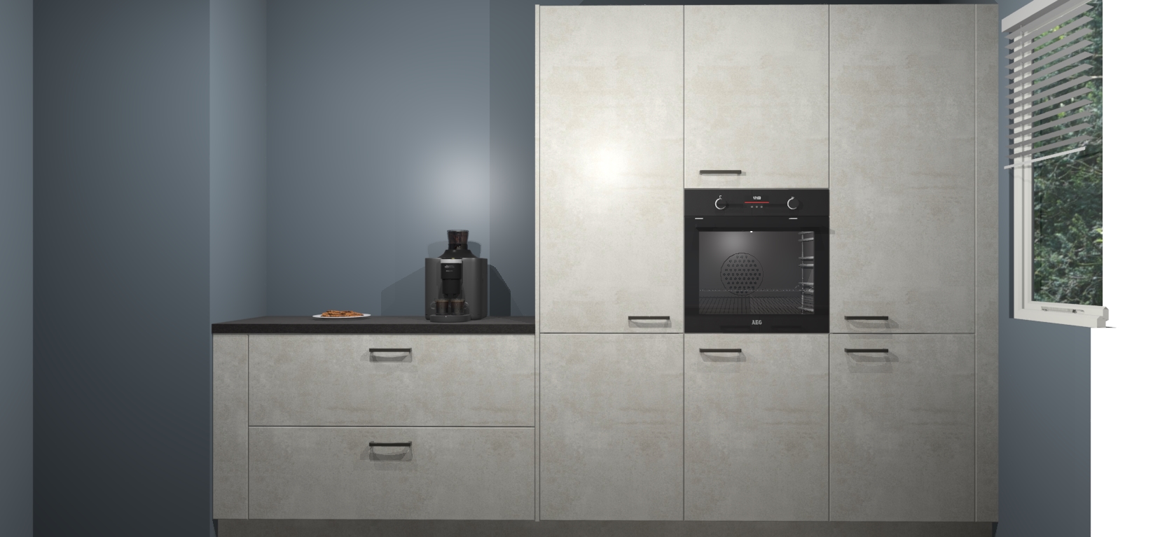 Een stijlvolle en praktische keuken als deze mag gezien worden. Dankzij de prachtige Beton Opaal matte afwerking wordt de keuken gemakkelijk het middelpunt van uw huis - hij ziet er geweldig uit onder allerlei lichtomstandigheden, van dag tot nacht!