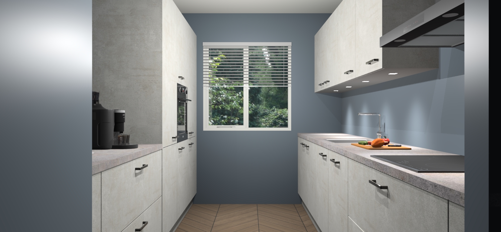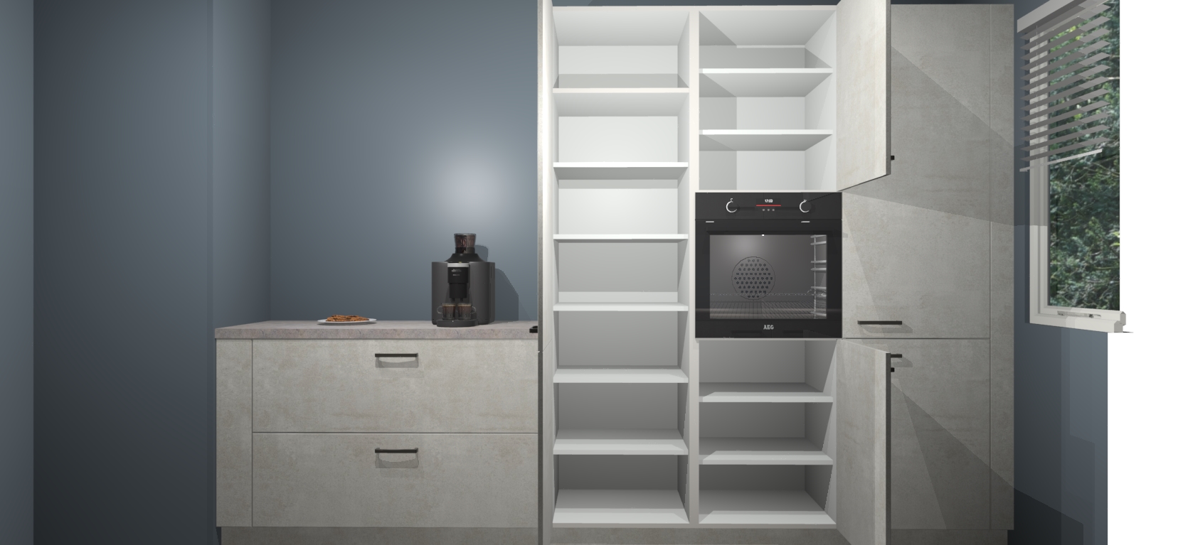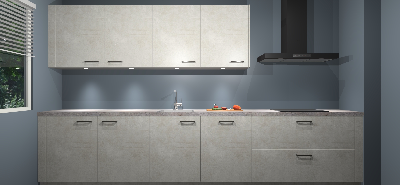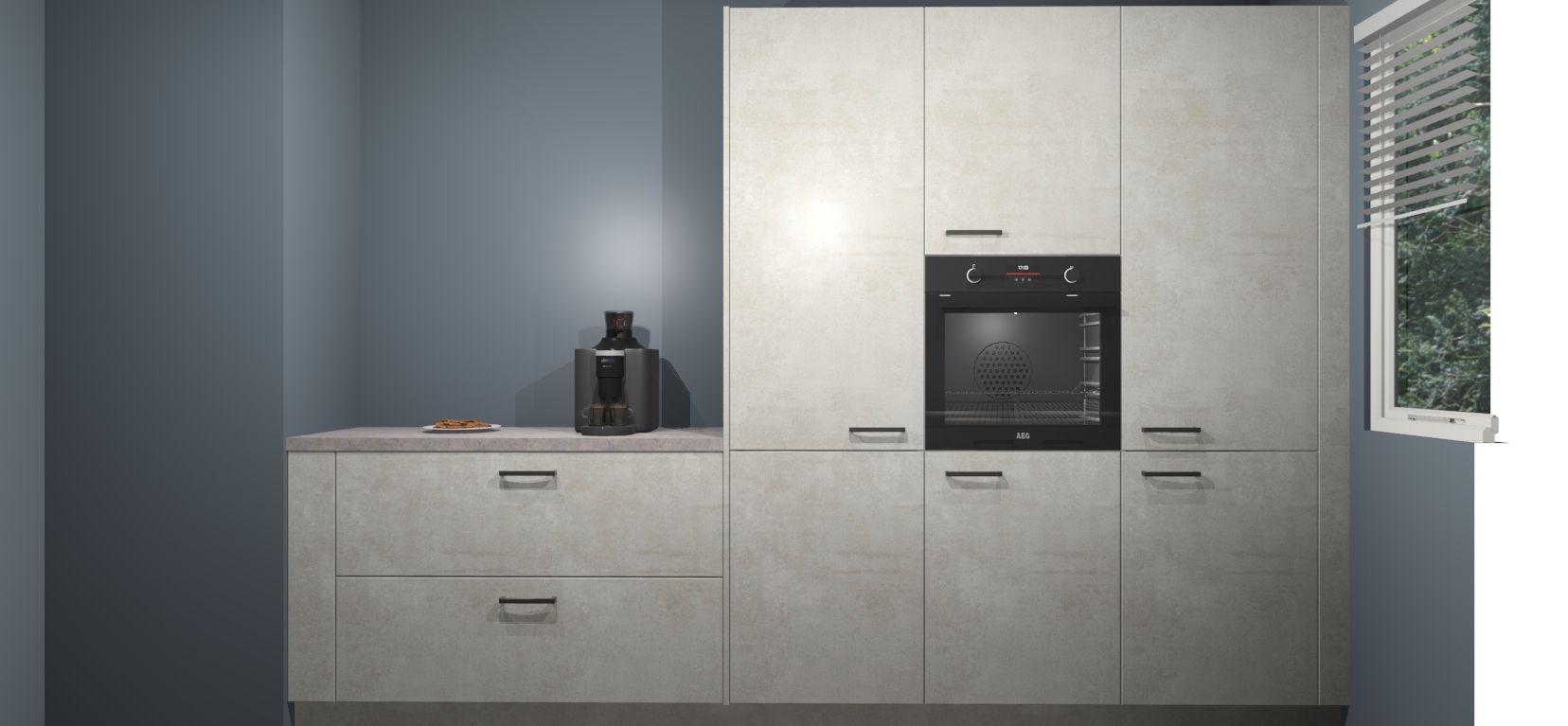Een stijlvolle en praktische keuken als deze mag gezien worden. Dankzij de prachtige Beton Opaal matte afwerking wordt de keuken gemakkelijk het middelpunt van uw huis - hij ziet er geweldig uit onder allerlei lichtomstandigheden, van dag tot nacht!