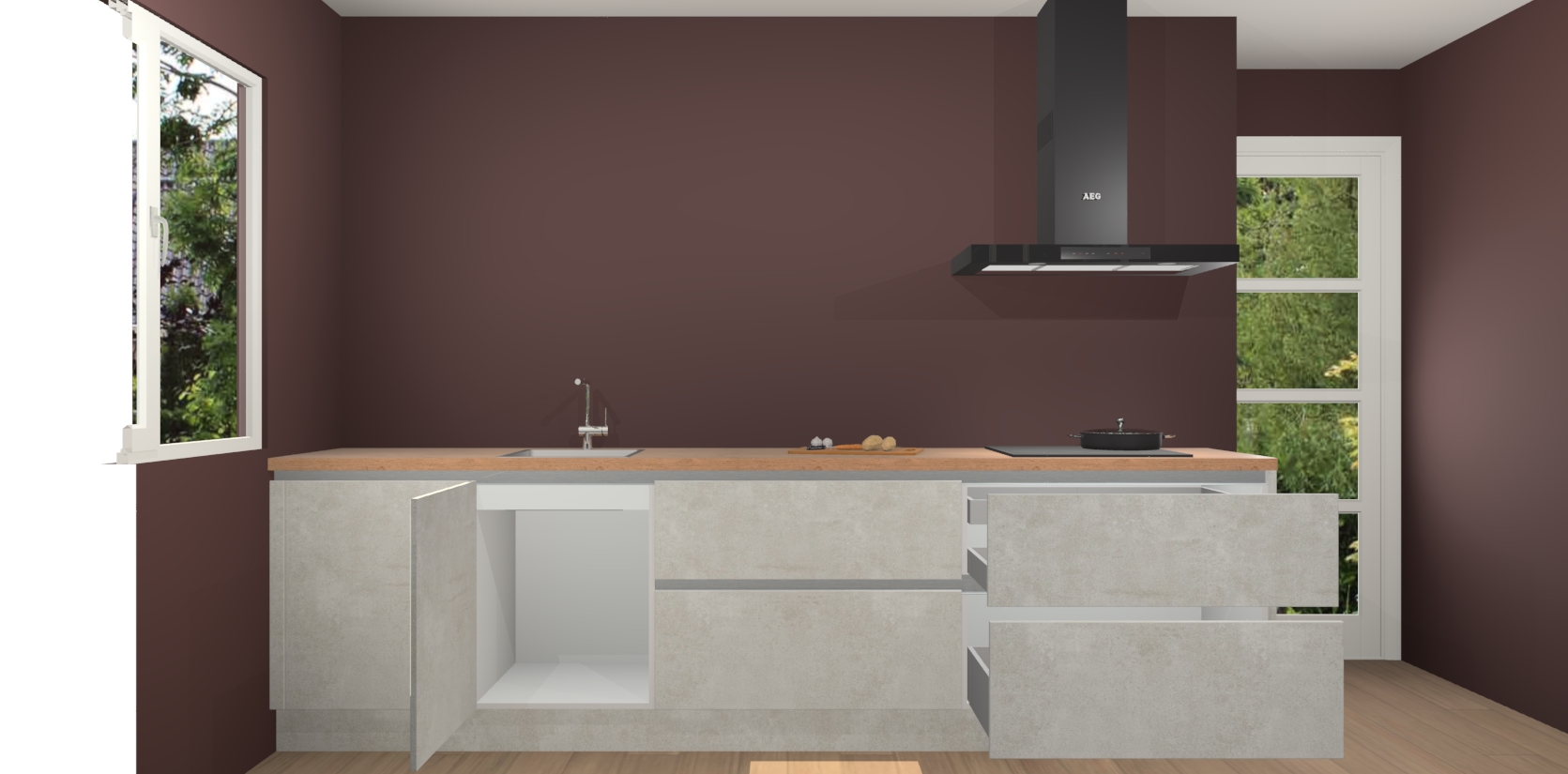 Inclusief plinten, stelpoten en werkblad