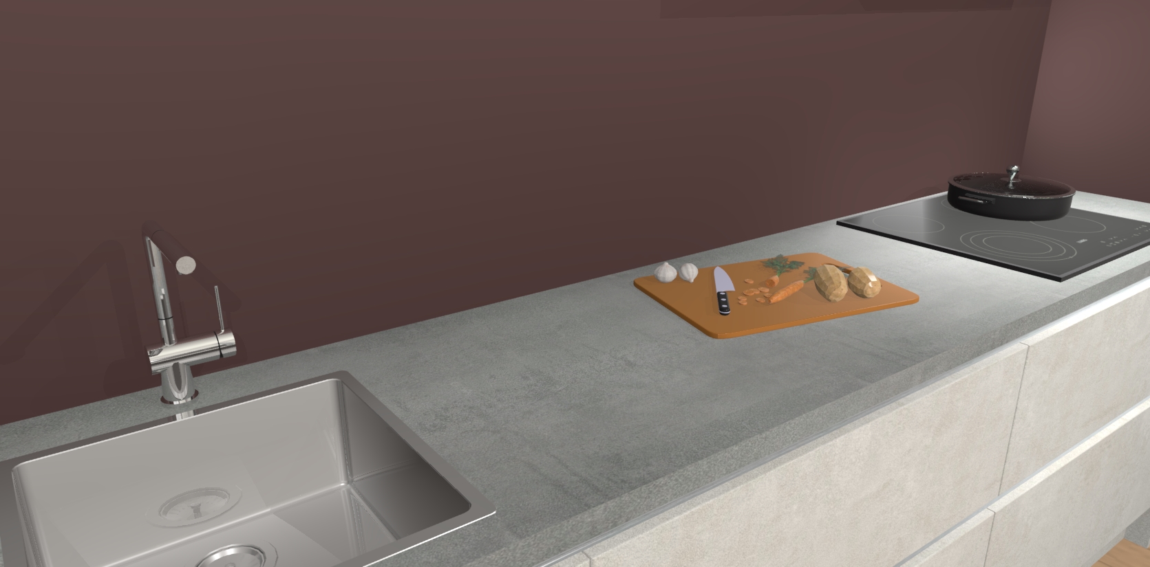 - Uitsparing van kookplaat, spoelbak en kraan dient u zelf te verzorgen.