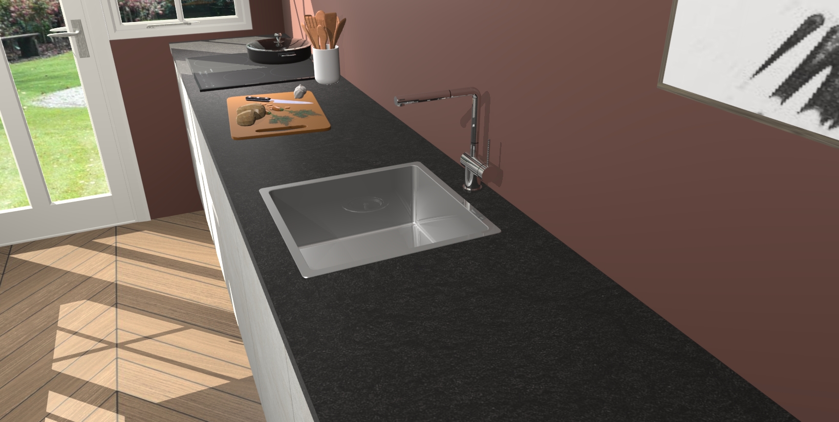 - Bij een hoekwerkblad zijn de hoeken in gevreesd en op maat gemaakt