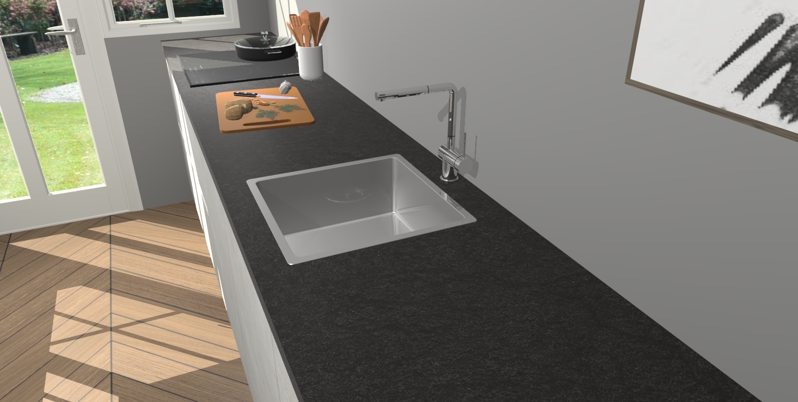 - Bij een hoekwerkblad zijn de hoeken in gevreesd en op maat gemaakt