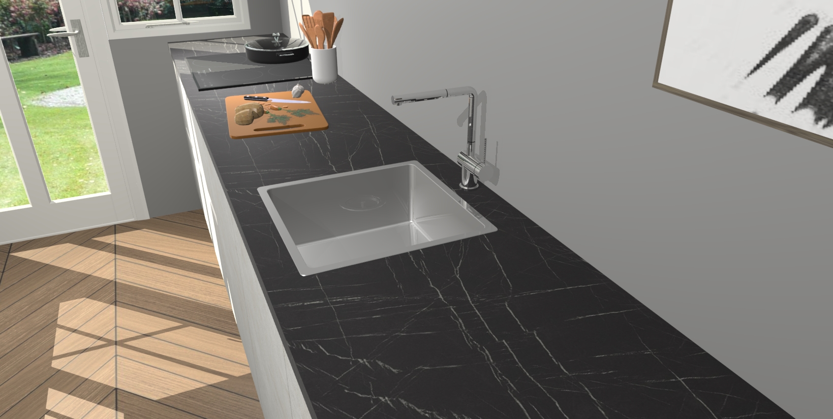 - Bij een hoekwerkblad zijn de hoeken in gevreesd en op maat gemaakt