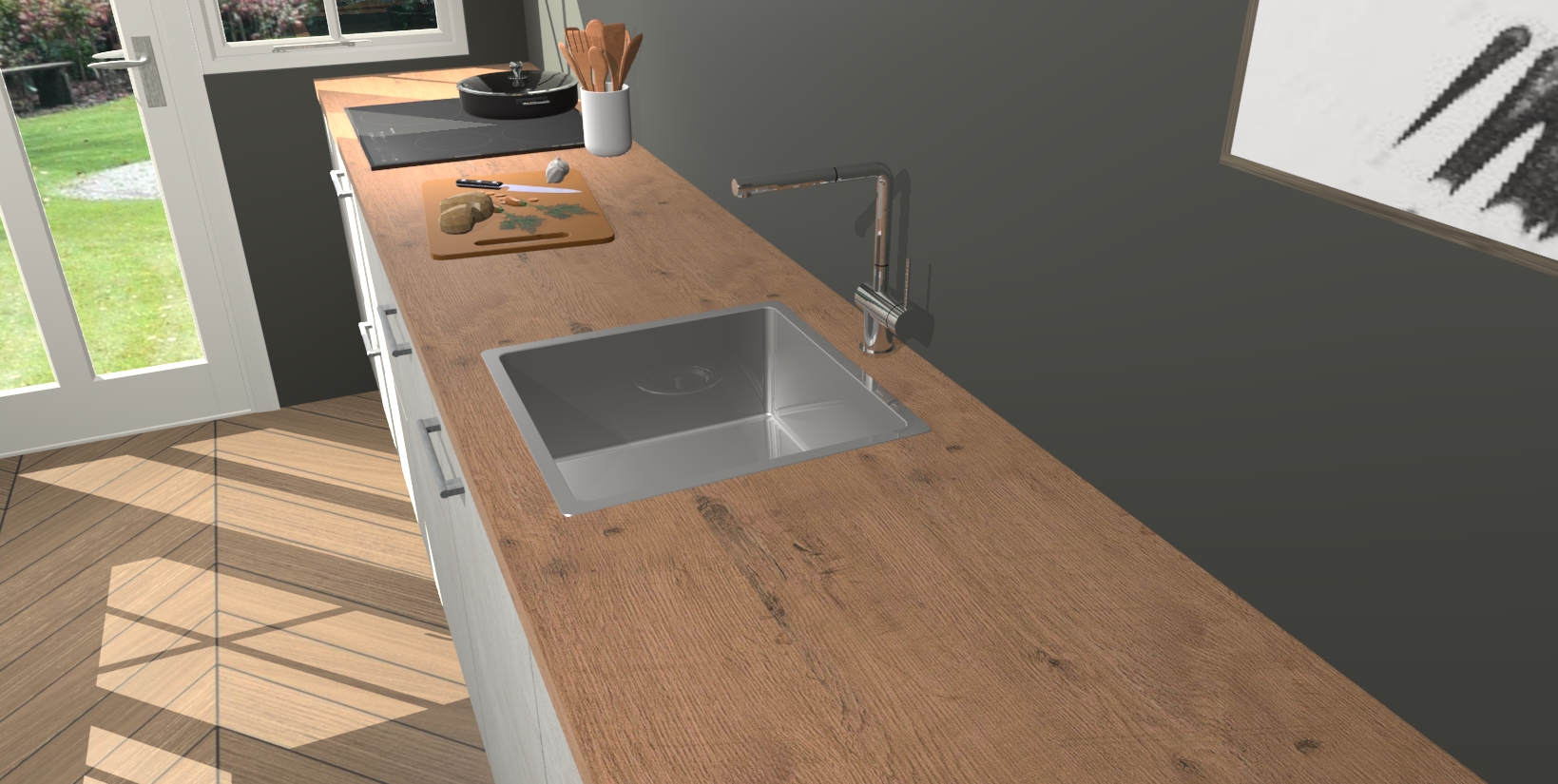 - Bij een hoekwerkblad zijn de hoeken in gevreesd en op maat gemaakt