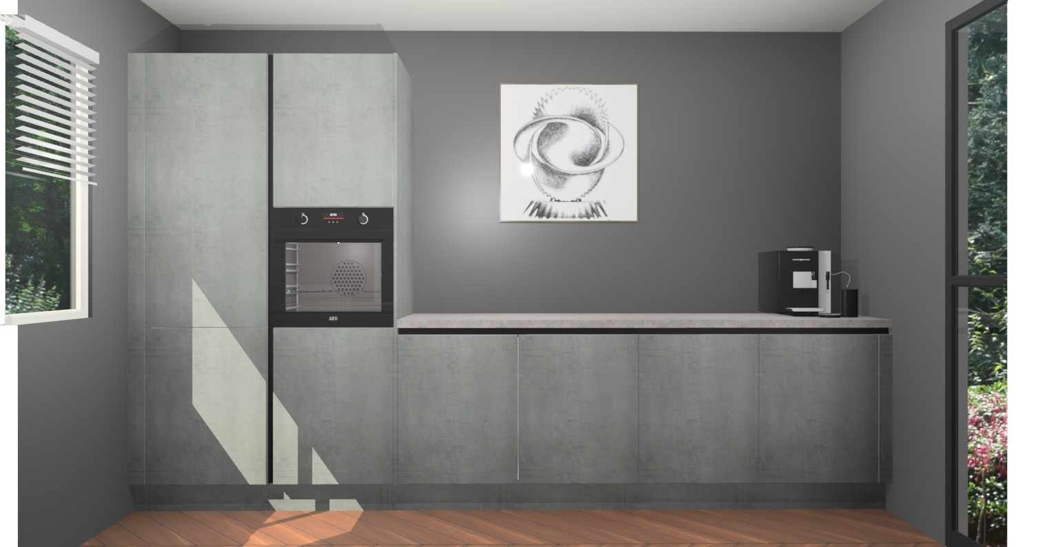 Welkom bij de Beton Parelgrijs greeploze keuken Lusaka. Deze prachtige keuken zal de komende jaren het middelpunt van de belangstelling in uw huis zijn. Uitgerust met vijf inbouwapparaten komt u nooit kookgereedschap tekort. Bovendien geeft de warme houtlook elke ruimte een uitnodigende en tijdloze uitstraling.