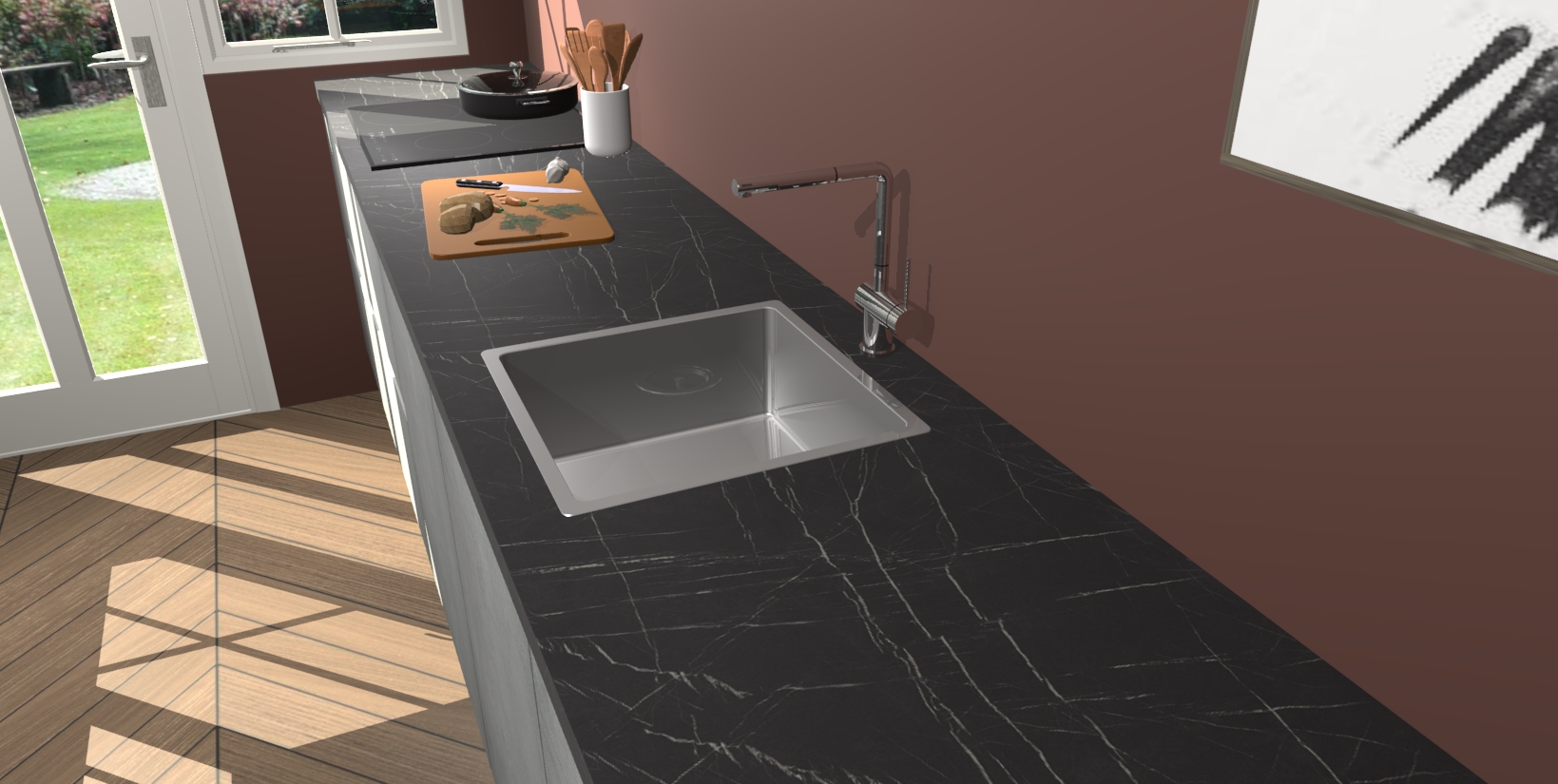 - Bij een hoekwerkblad zijn de hoeken in gevreesd en op maat gemaakt