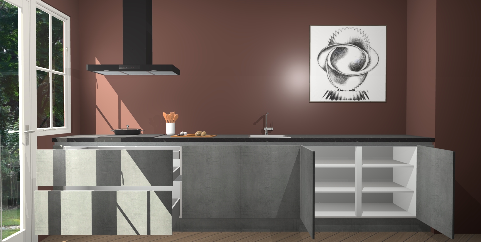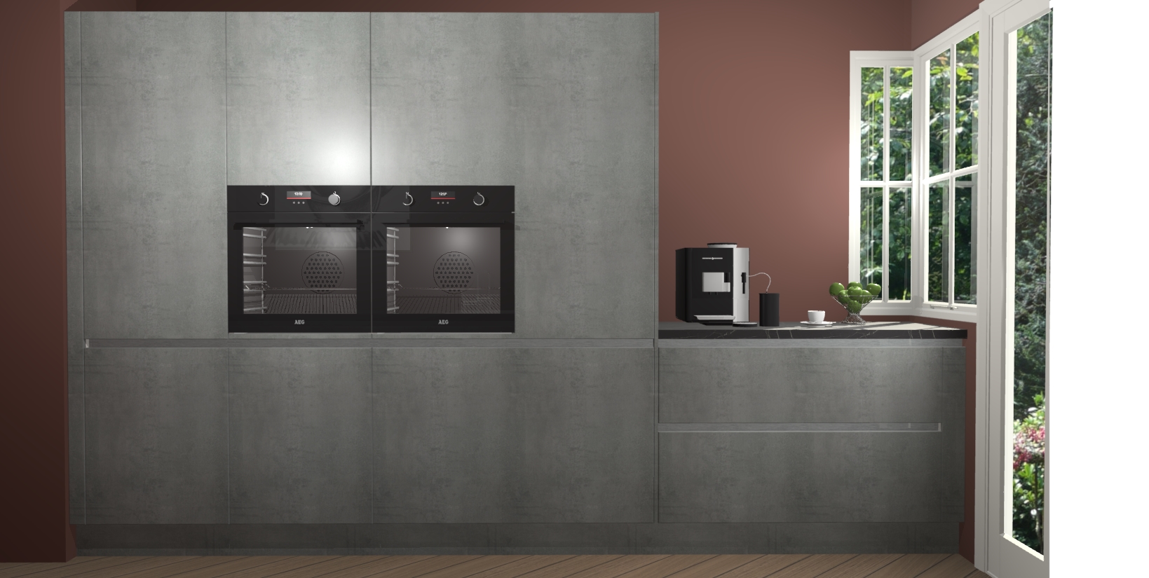 Een stijlvolle en praktische keuken als deze mag gezien worden. Dankzij de prachtige beton parelgrijs matte afwerking wordt de keuken gemakkelijk het middelpunt van uw huis - hij ziet er geweldig uit onder allerlei lichtomstandigheden, van dag tot nacht!