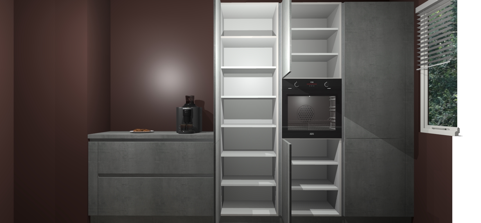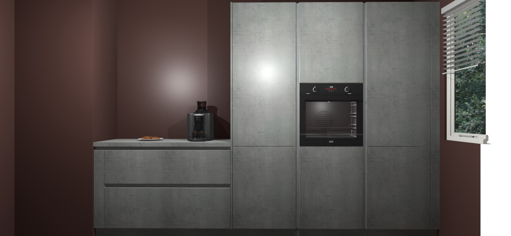 Een stijlvolle en praktische keuken als deze mag gezien worden. Dankzij de prachtige Beton Parelgrijs matte afwerking wordt de keuken gemakkelijk het middelpunt van uw huis - hij ziet er geweldig uit onder allerlei lichtomstandigheden, van dag tot nacht!
