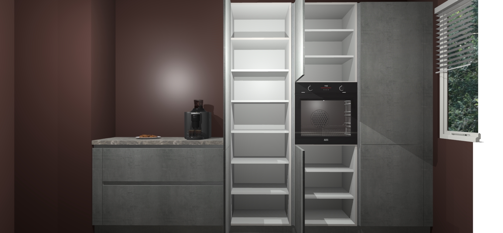 Een stijlvolle en praktische keuken als deze mag gezien worden. Dankzij de prachtige Beton Parelgrijs matte afwerking wordt de keuken gemakkelijk het middelpunt van uw huis - hij ziet er geweldig uit onder allerlei lichtomstandigheden, van dag tot nacht!