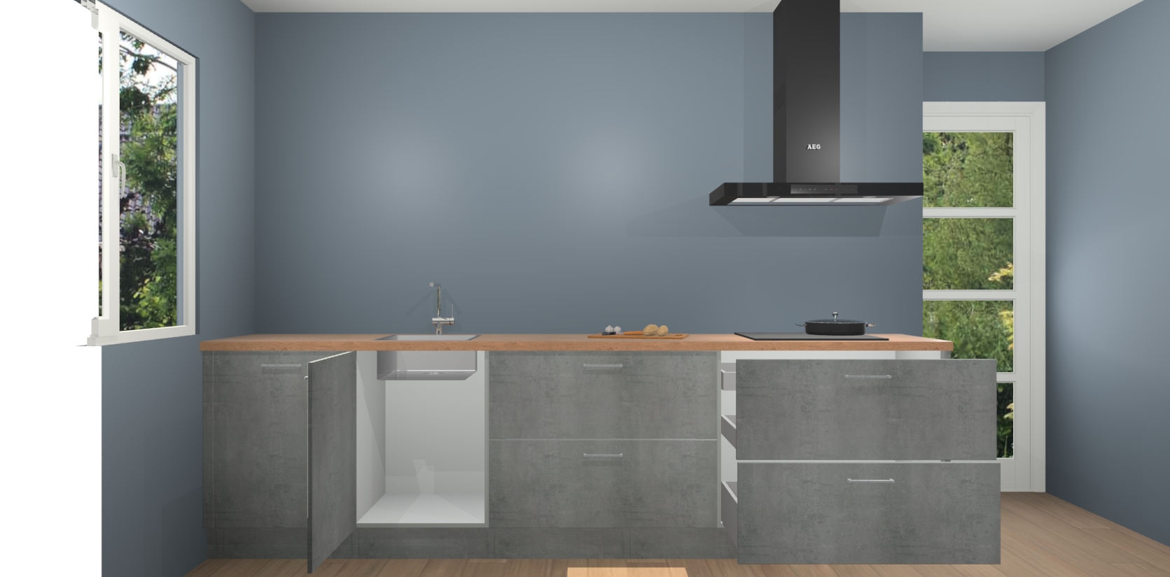 Inclusief plinten, stelpoten en werkblad