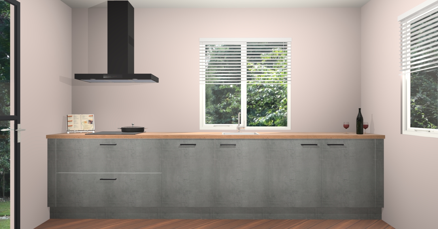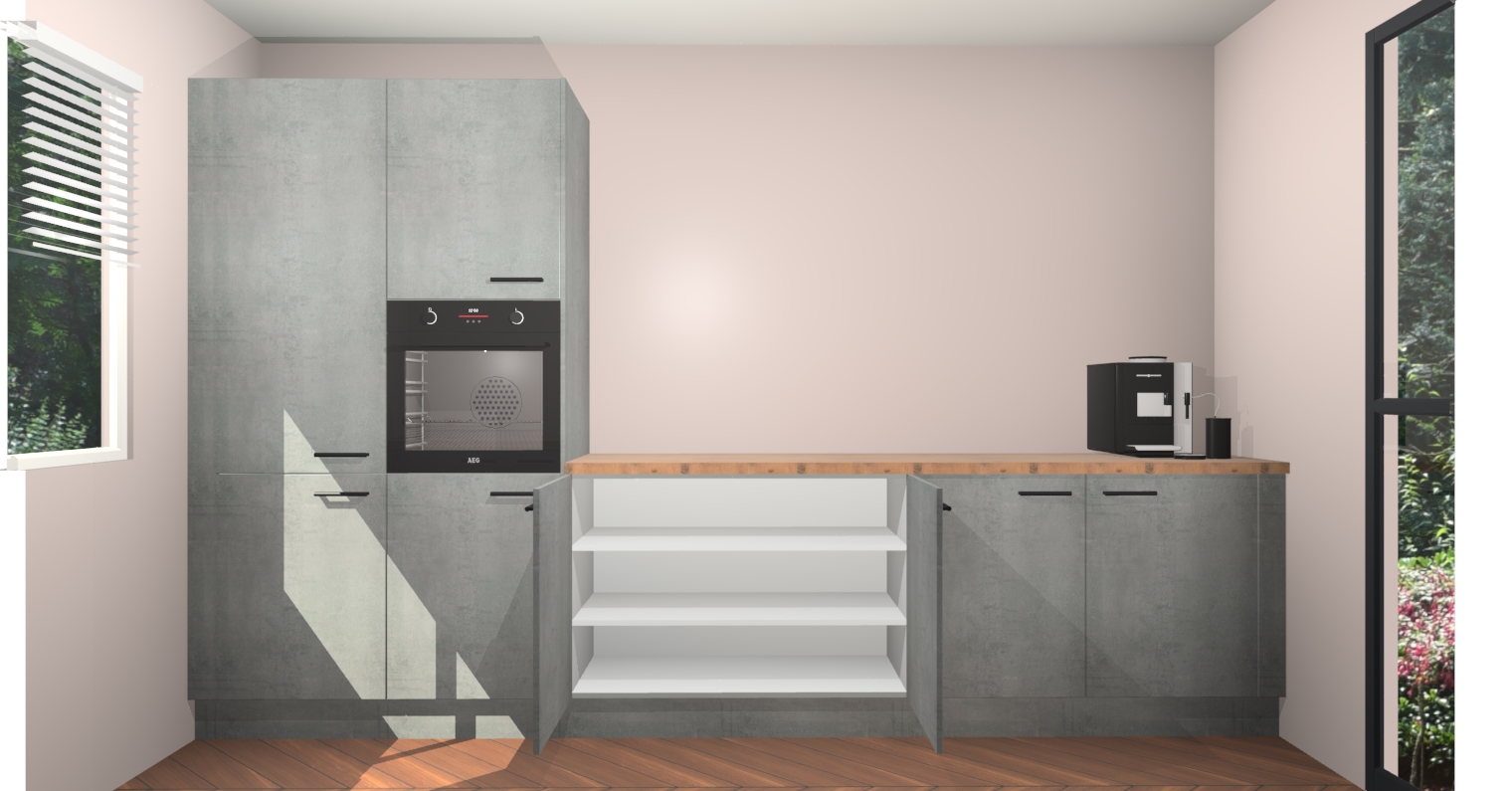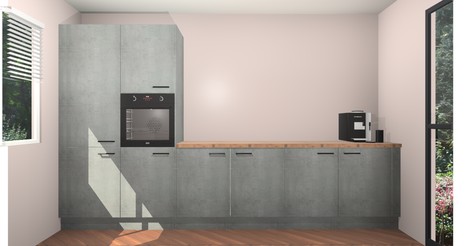 Welkom bij de Beton Parelgrijs keuken Lusaka. Deze prachtige keuken zal de komende jaren het middelpunt van de belangstelling in uw huis zijn. Uitgerust met vijf inbouwapparaten komt u nooit kookgereedschap tekort. Bovendien geeft de warme houtlook elke ruimte een uitnodigende en tijdloze uitstraling.