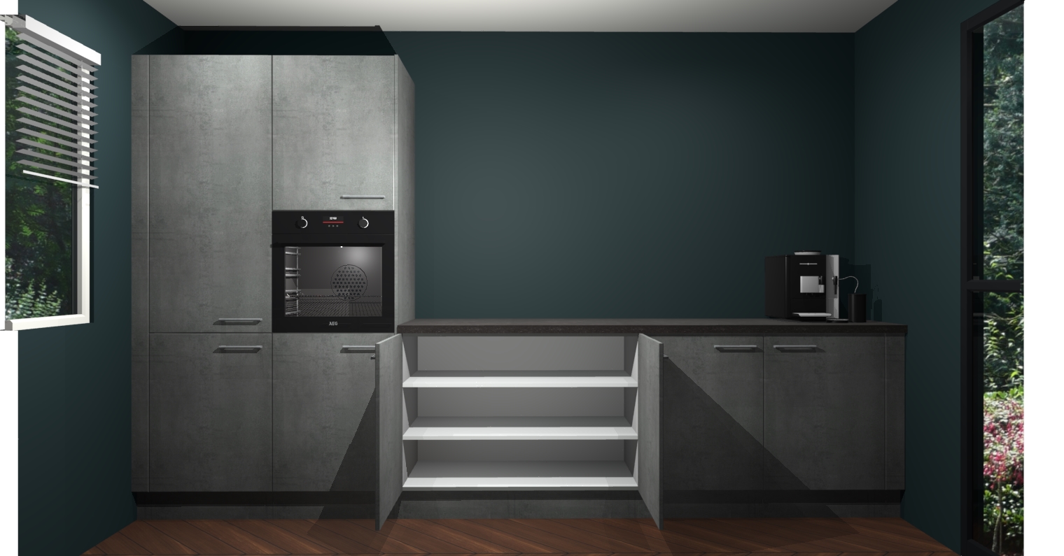 Welkom bij de Beton Parelgrijs keuken Lusaka. Deze prachtige keuken zal de komende jaren het middelpunt van de belangstelling in uw huis zijn. Uitgerust met vijf inbouwapparaten komt u nooit kookgereedschap tekort. Bovendien geeft de warme houtlook elke ruimte een uitnodigende en tijdloze uitstraling.