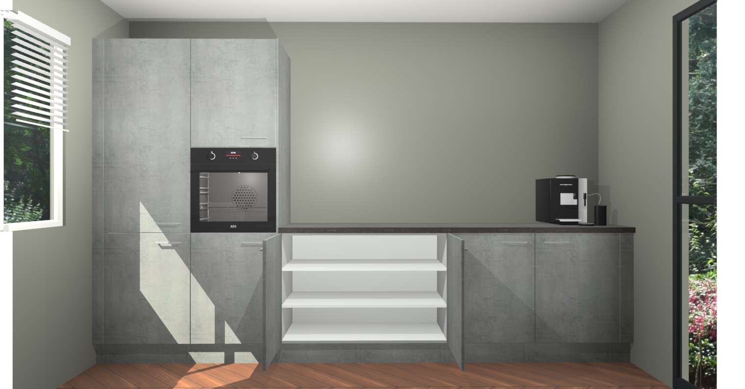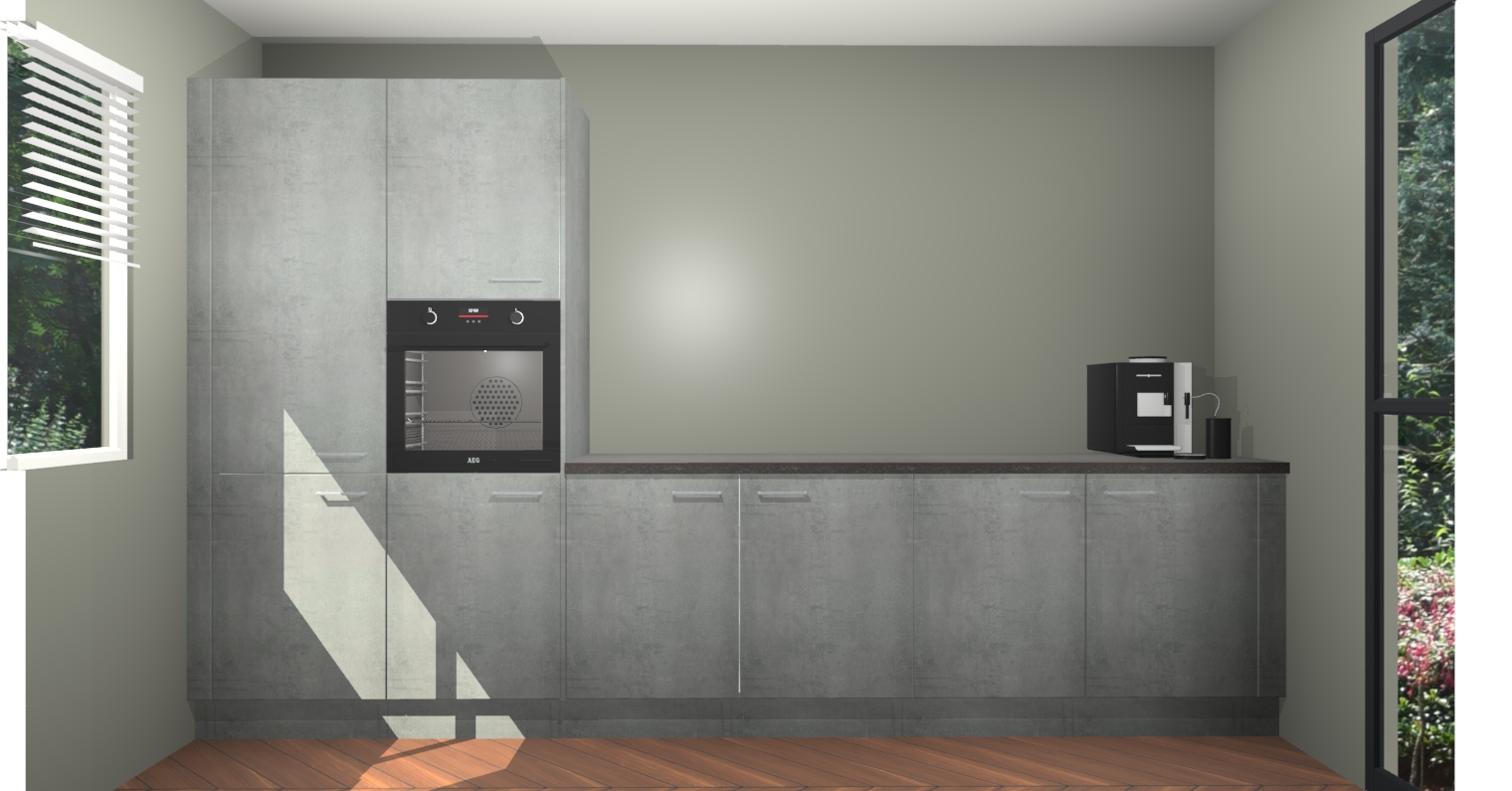 Welkom bij de Beton Parelgrijs keuken Lusaka. Deze prachtige keuken zal de komende jaren het middelpunt van de belangstelling in uw huis zijn. Uitgerust met vijf inbouwapparaten komt u nooit kookgereedschap tekort. Bovendien geeft de warme houtlook elke ruimte een uitnodigende en tijdloze uitstraling.