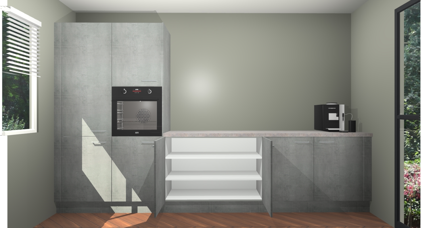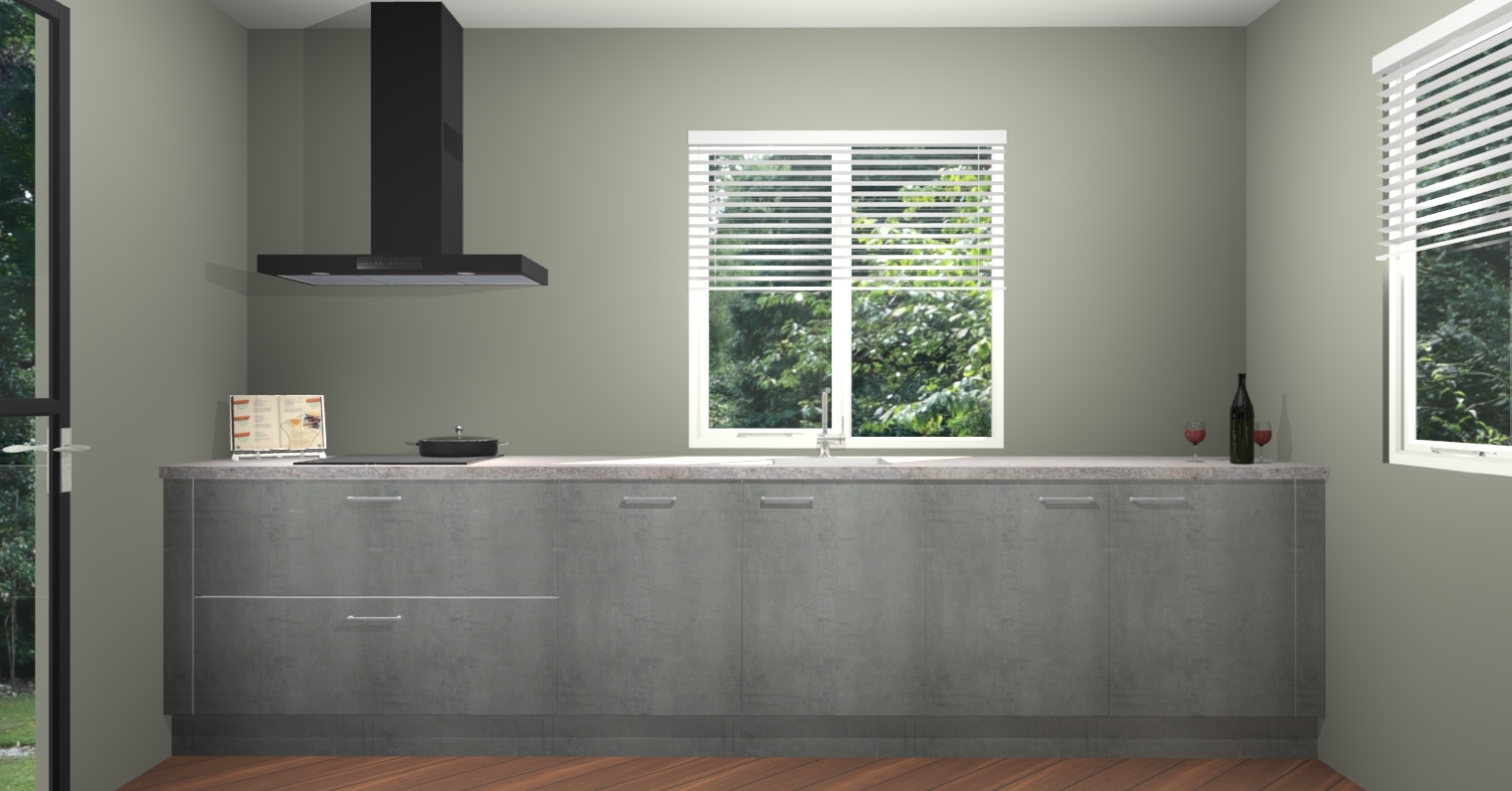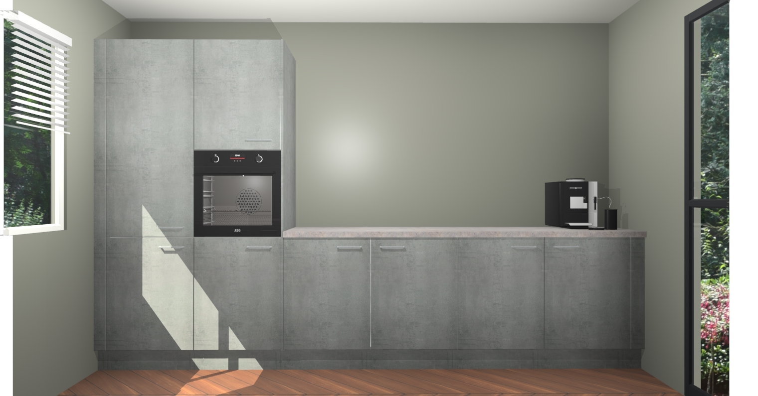 Welkom bij de Beton Parelgrijs keuken Lusaka. Deze prachtige keuken zal de komende jaren het middelpunt van de belangstelling in uw huis zijn. Uitgerust met vijf inbouwapparaten komt u nooit kookgereedschap tekort. Bovendien geeft de warme houtlook elke ruimte een uitnodigende en tijdloze uitstraling.