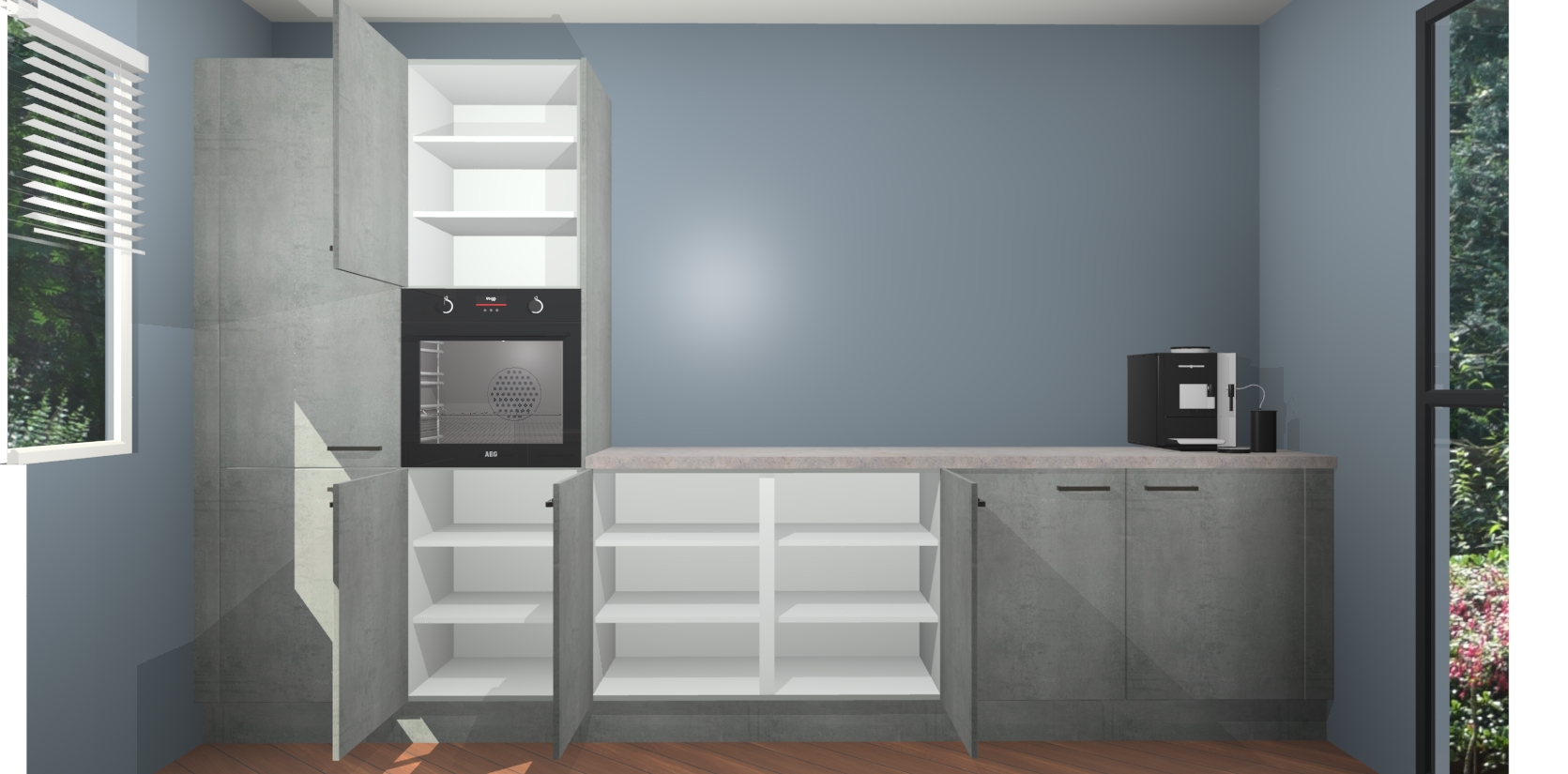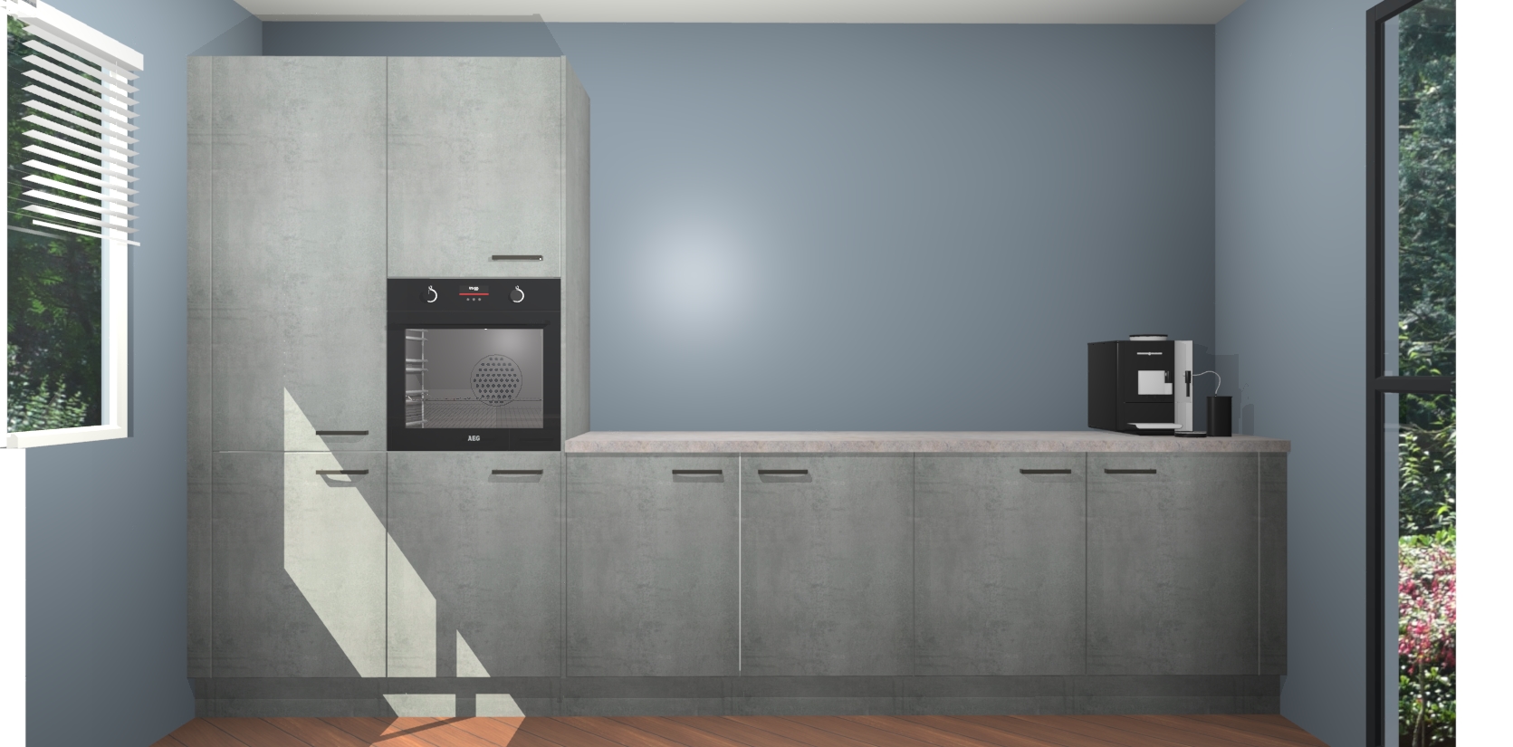 Welkom bij de Beton Parelgrijs keuken Lusaka. Deze prachtige keuken zal de komende jaren het middelpunt van de belangstelling in uw huis zijn. Uitgerust met vijf inbouwapparaten komt u nooit kookgereedschap tekort. Bovendien geeft de warme houtlook elke ruimte een uitnodigende en tijdloze uitstraling.