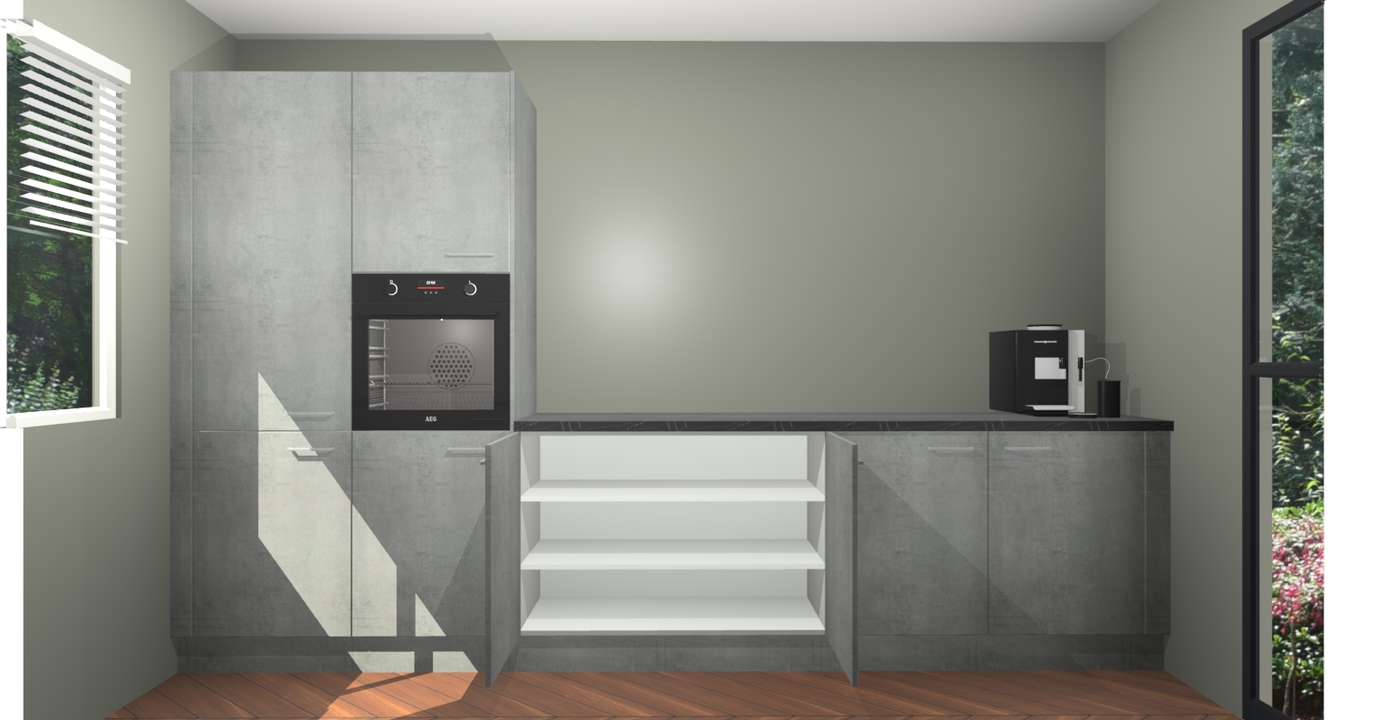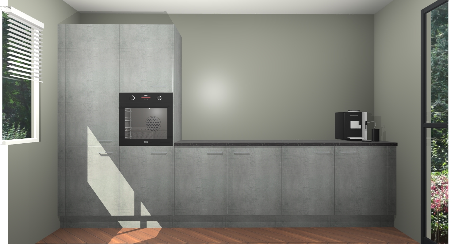 Welkom bij de Beton Parelgrijs keuken Lusaka. Deze prachtige keuken zal de komende jaren het middelpunt van de belangstelling in uw huis zijn. Uitgerust met vijf inbouwapparaten komt u nooit kookgereedschap tekort. Bovendien geeft de warme houtlook elke ruimte een uitnodigende en tijdloze uitstraling.